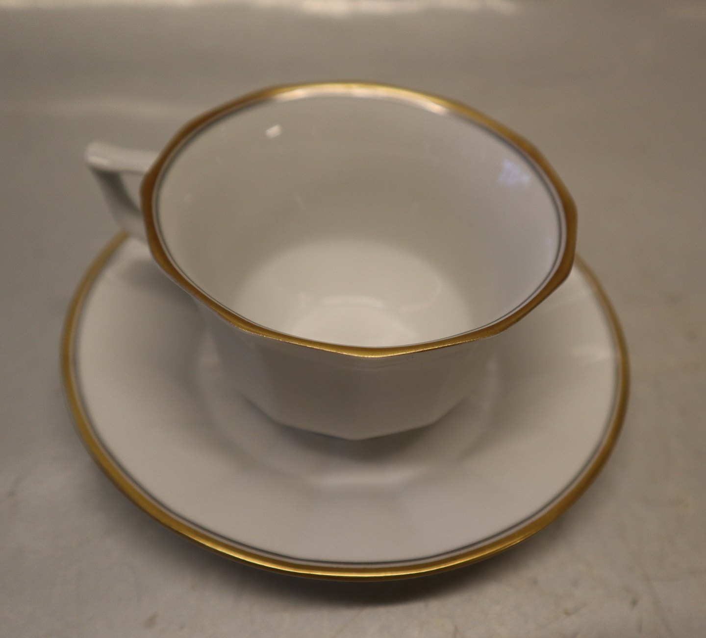 8608-1535 Cup & saucer 1207 (072-073) gold & grey lines Royal Copenhagen angular with double gold trim In mint and nice condition