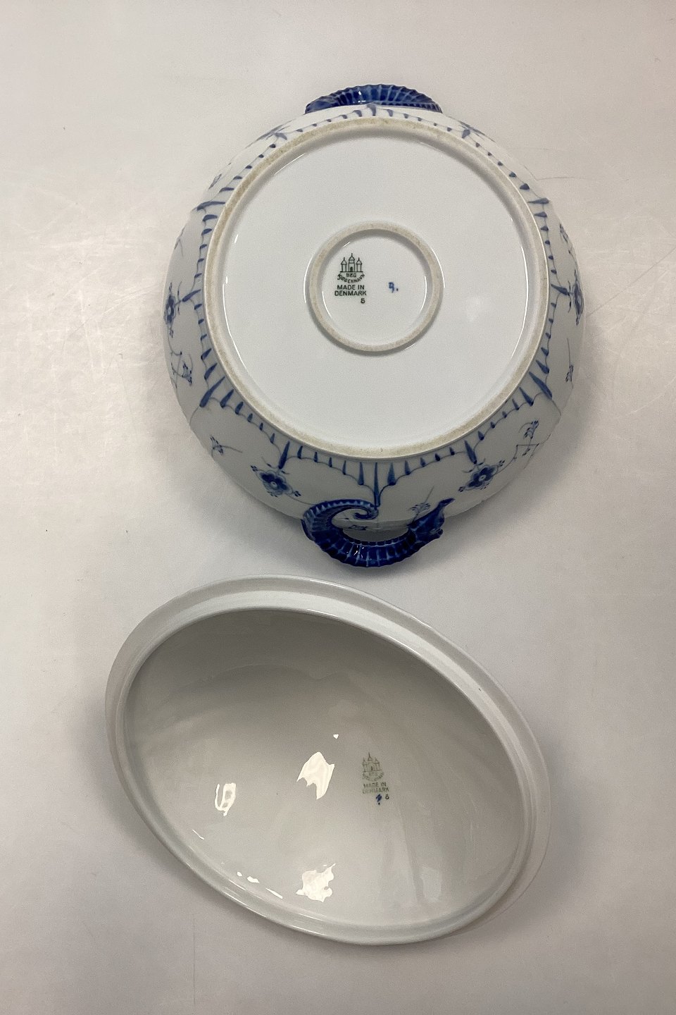 Bing & Grondahl Blue Painted Blue Fluted Tureen No. 5Diameter 22 cm / 8.66 inch