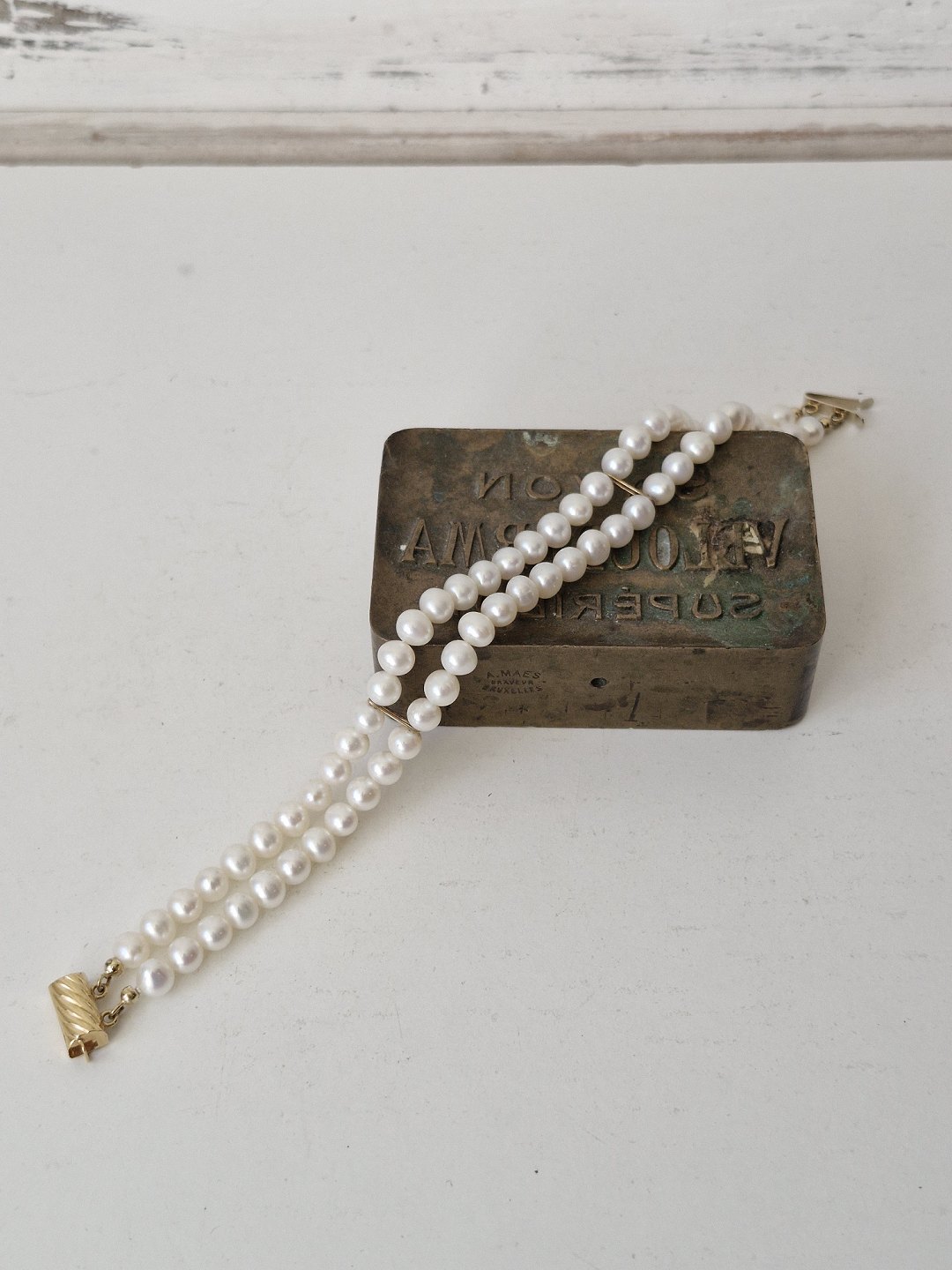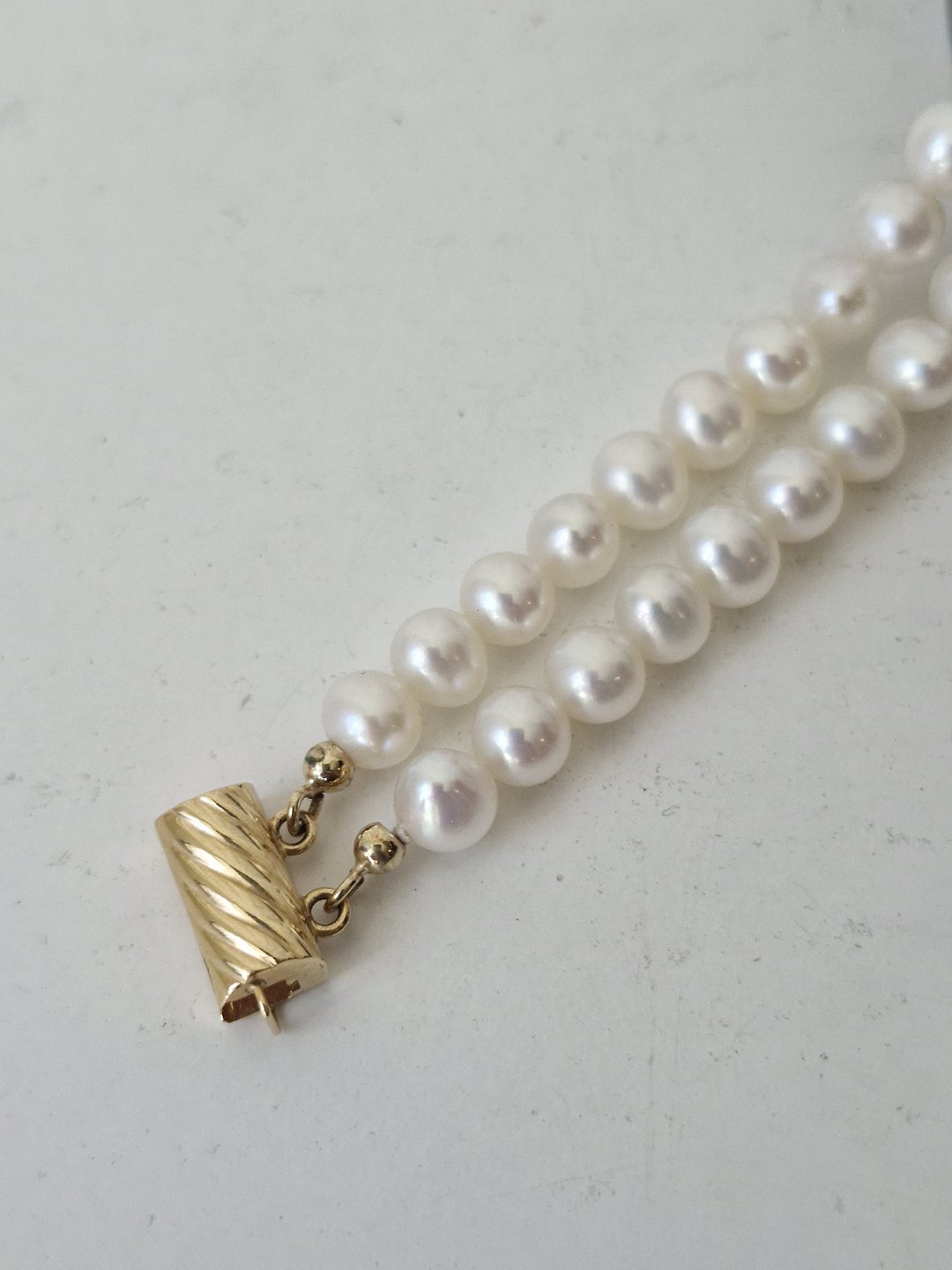 Very beautiful two-strand cultured pearl bracelet with clasp in 18 kt gold.Stamped 750.