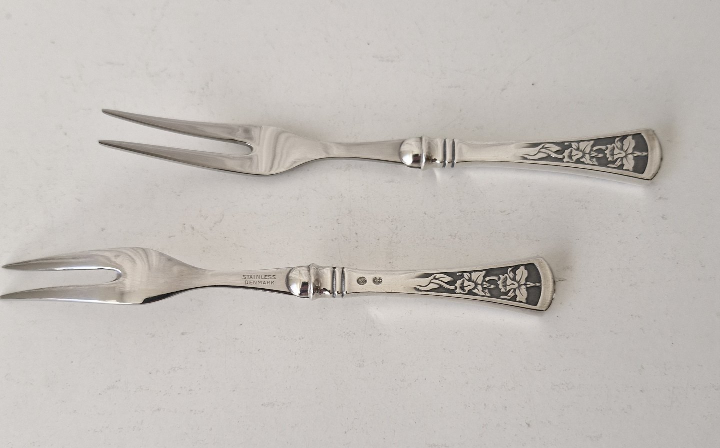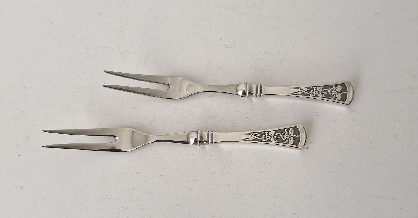 Orchid stake fork in silver and steelStamped the three towers
