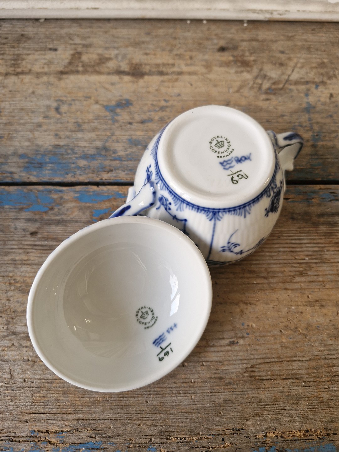 Royal Copenhagen Blue Fluted half lace small sugar bowlNo. 691, Factory first