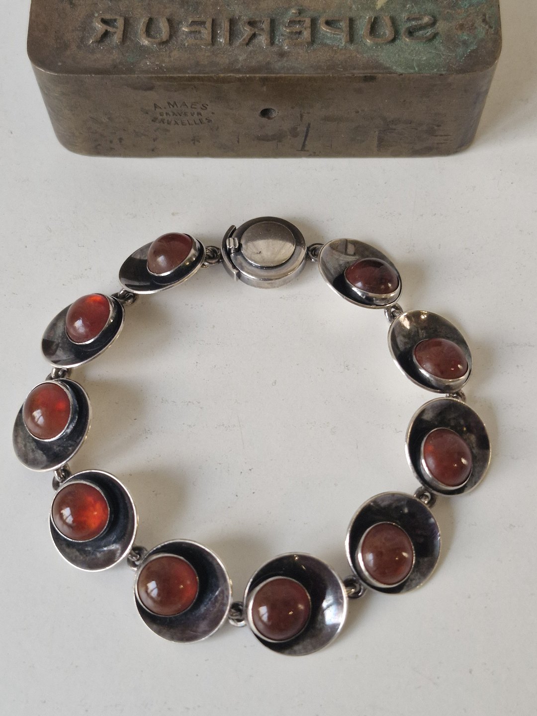N.E.From vintage bracelet in sterling silver and amberStamped: N.E.From - Sterling - Denmark