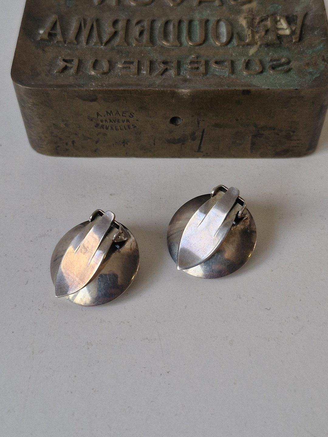 N.E.From vintage ear clip in sterling silver and amberStamped: N.E.From - Sterling - Denmark
