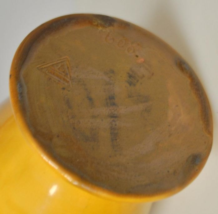 Ceramic vase, Annashåb Lervarefabrik, 1930s. Egebjerg near Horsens, Denmark. No. 608. Yellow and brown glazed. Stamped. H.: 24.5 cm.Perfect condition!