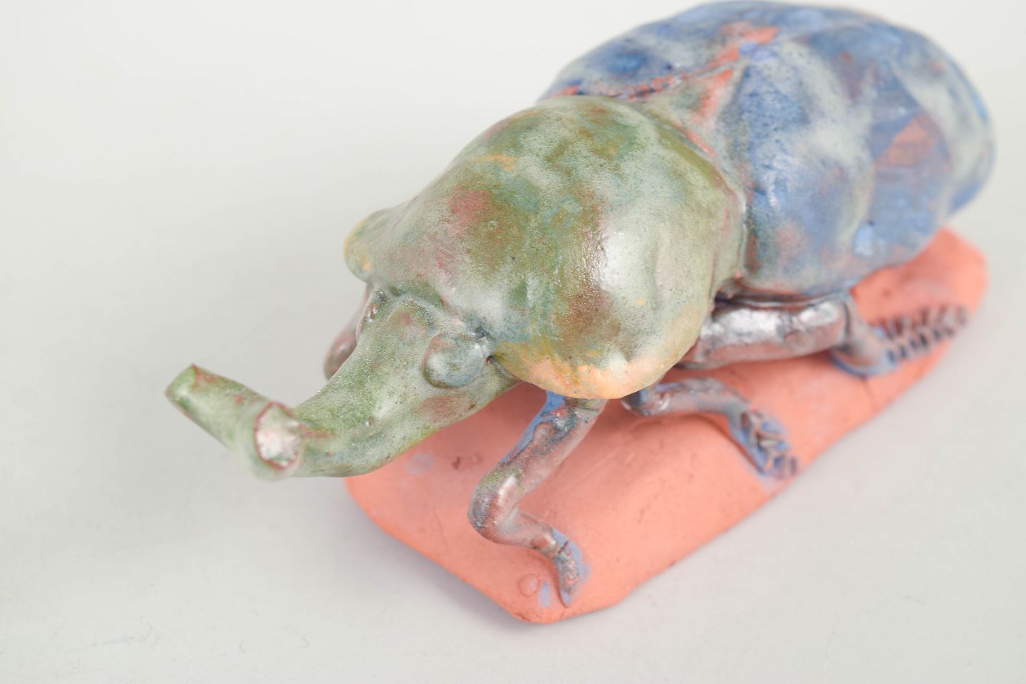 Nils-Erik Zetterström, insect figure.Unique ceramic sculpture depicting an insect executed in stoneware with multicoloured glaze in green, blue and brown tonal nuances. The figure is modelled with naturalistic detailing and placed on a small clay base, giving the piece a sculptural and lively character. Signed and dated 1978.