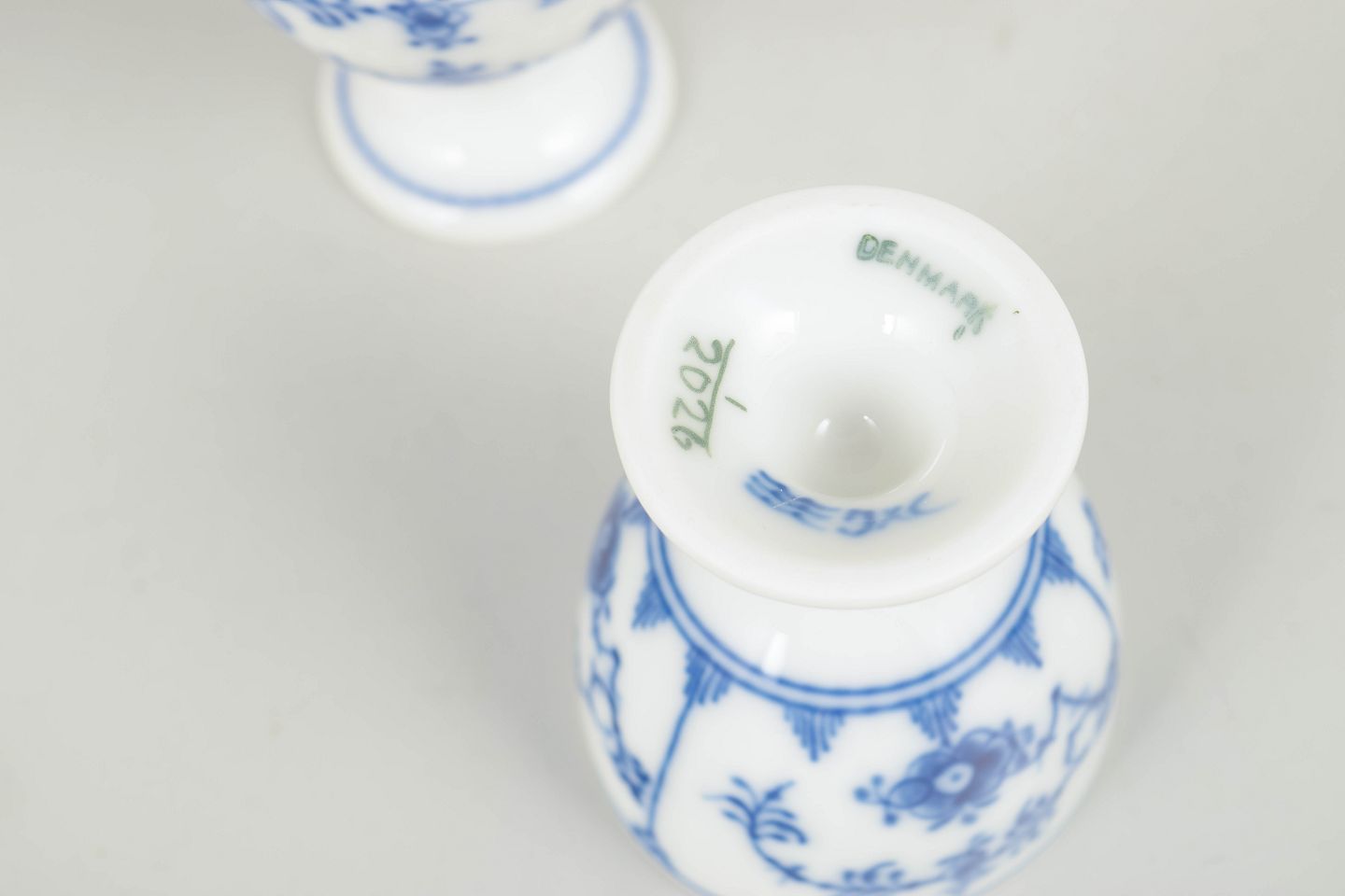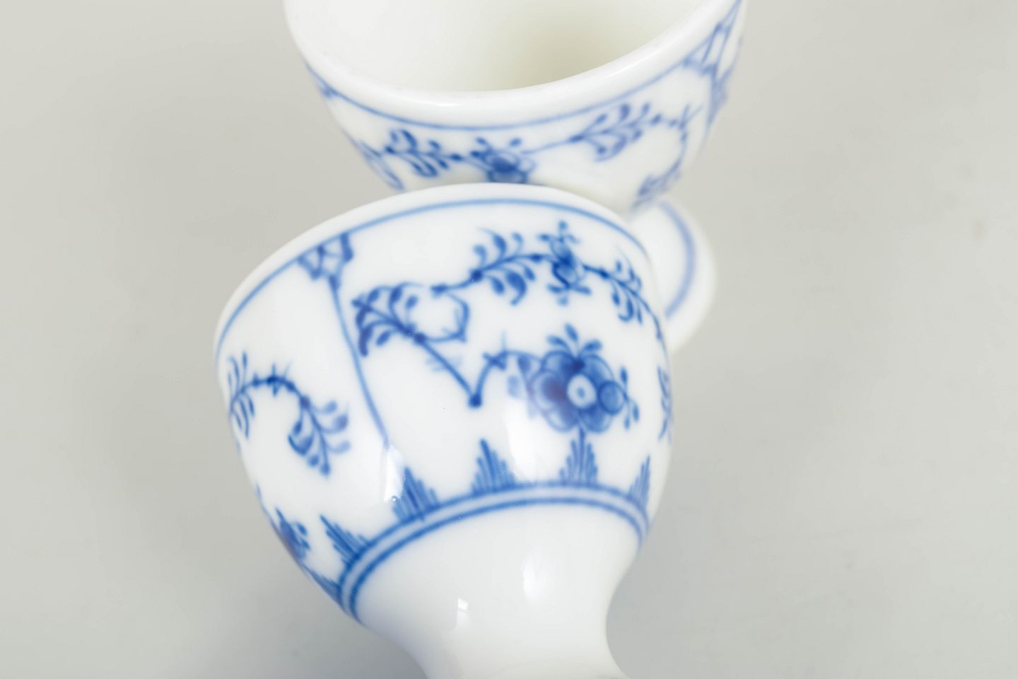 Royal Copenhagen Blue Fluted Plain, set of two egg cups.Set of two hand-painted porcelain egg cups decorated with the classic blue fluted pattern in cobalt underglaze. The egg cups feature a rounded bowl with small foot and are decorated with the characteristic floral motifs and stylised garlands of the series. Marked underneath with the Royal Copenhagen factory mark.