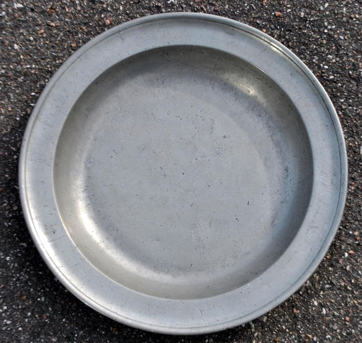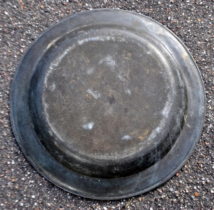 Large pewter dish, 19th century. Stamped. Diameter: 42 cm.Item number: 29085