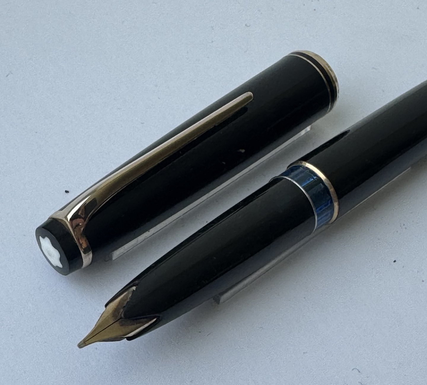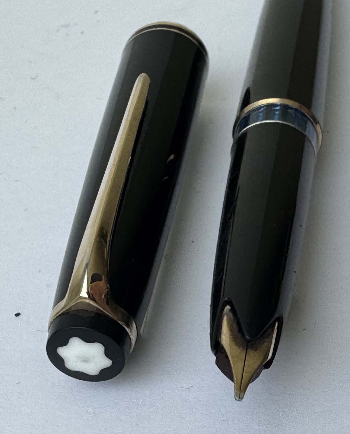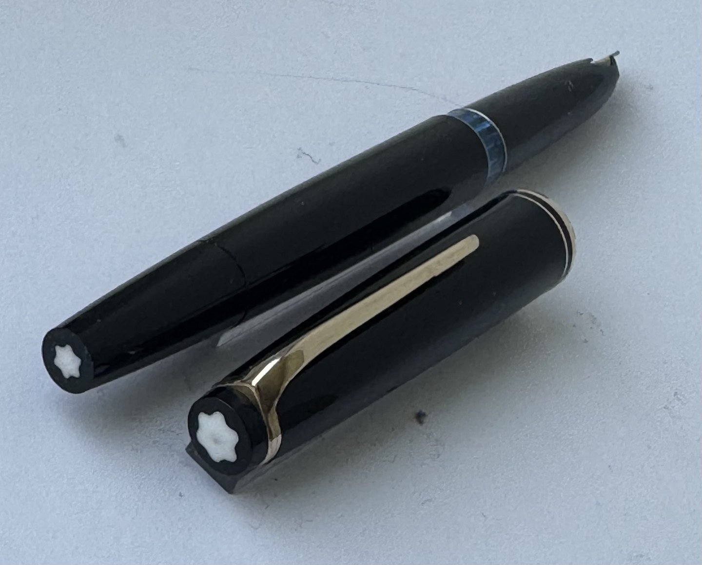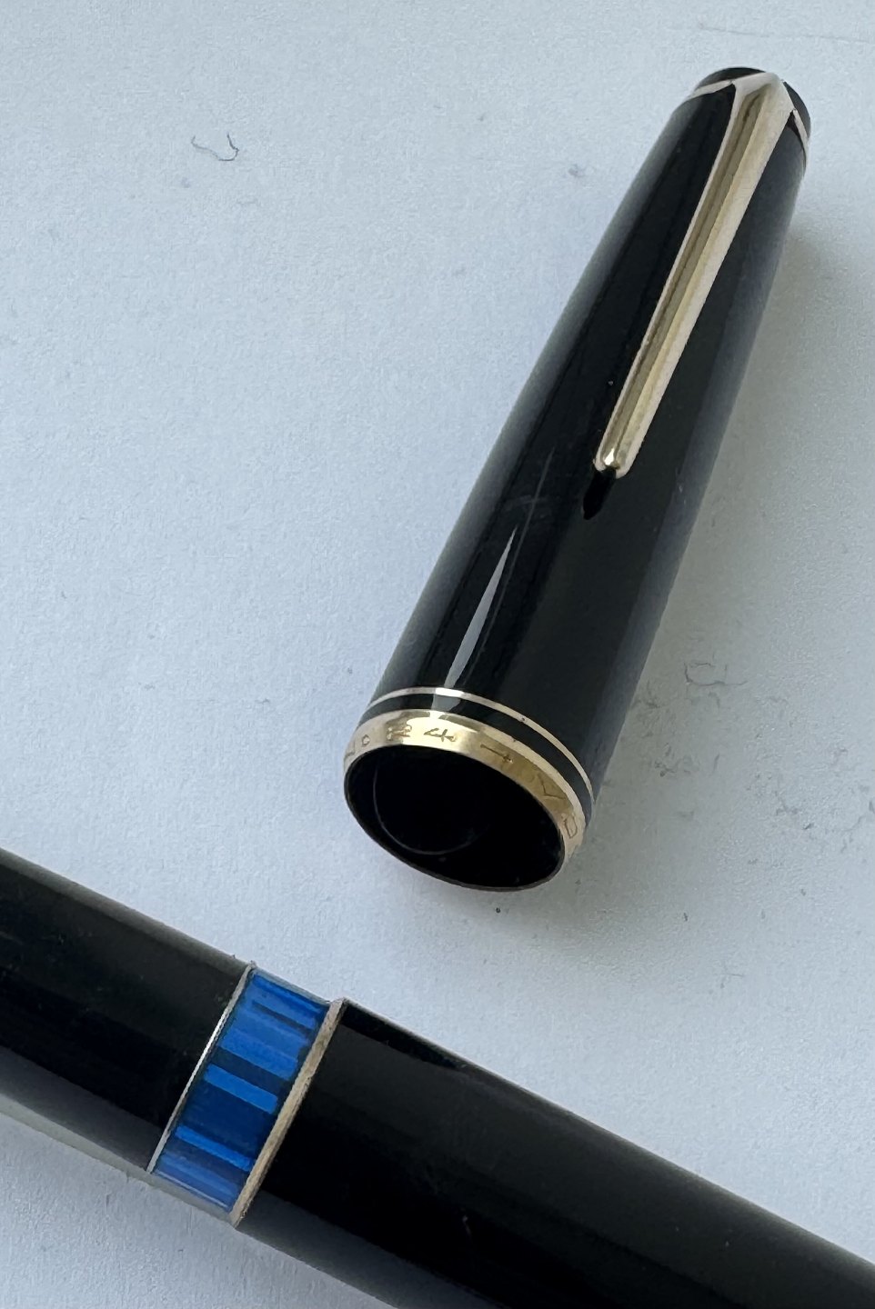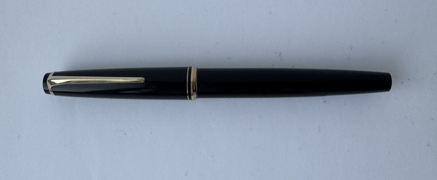 Black Montblanc no. 24 fountain pen from around 1970. Appears in good condition. Ready to be used. Piston filler ink refill. All parts original. The fountain pen is 13.7 cm long