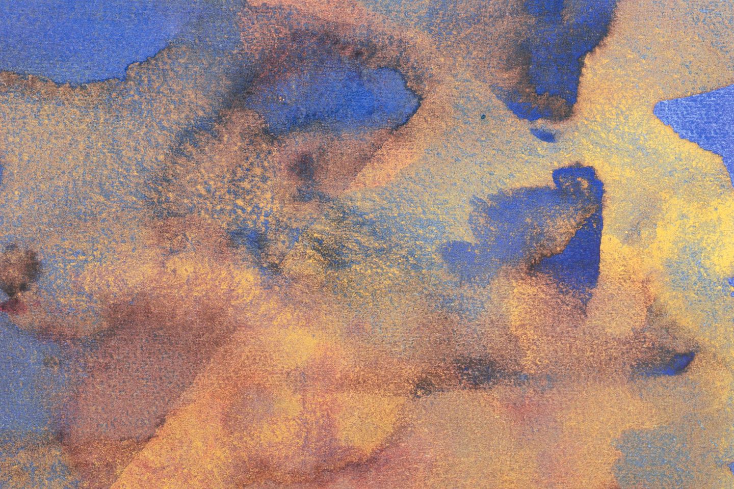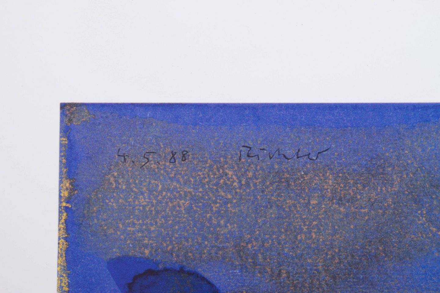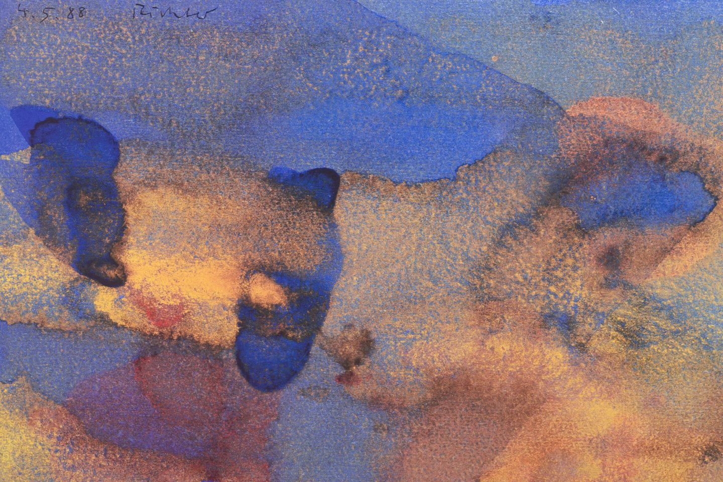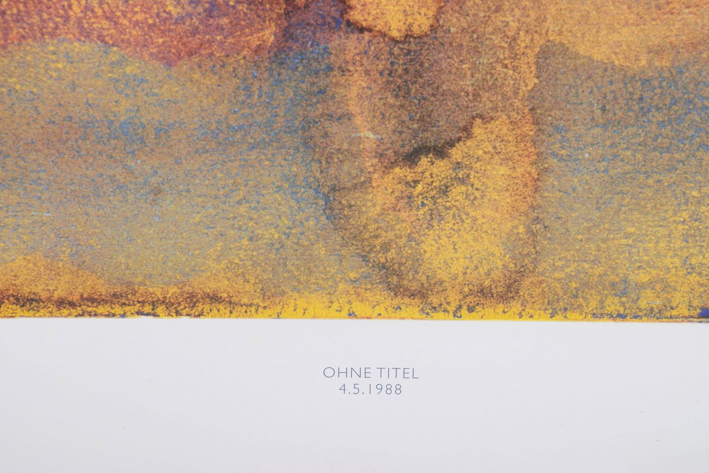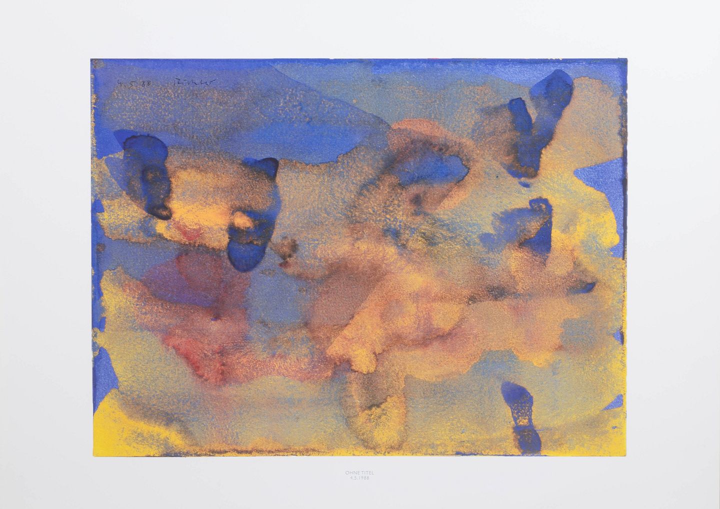 Gerhard Richter, colour print, well listed German artist.Abstract composition executed as a colour print with soft transitions in blue, pink, yellow and beige tones. Signed in the print and dated 1988.