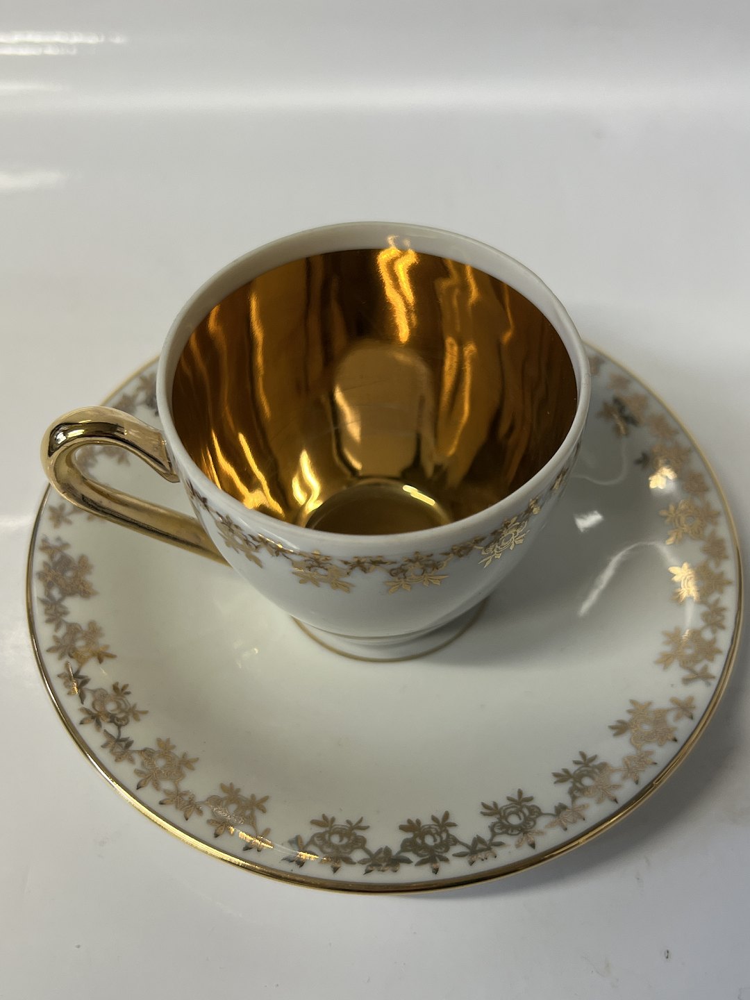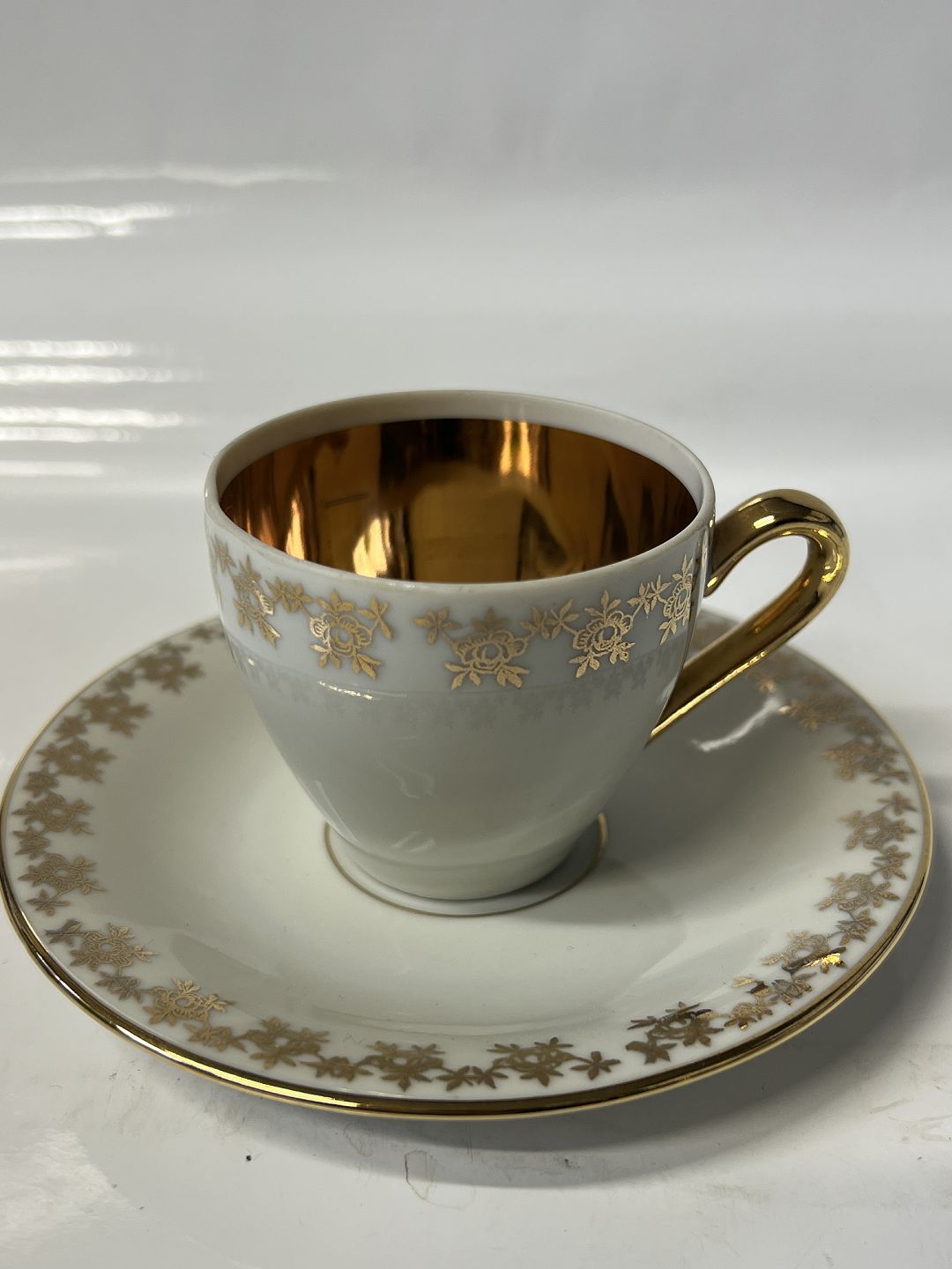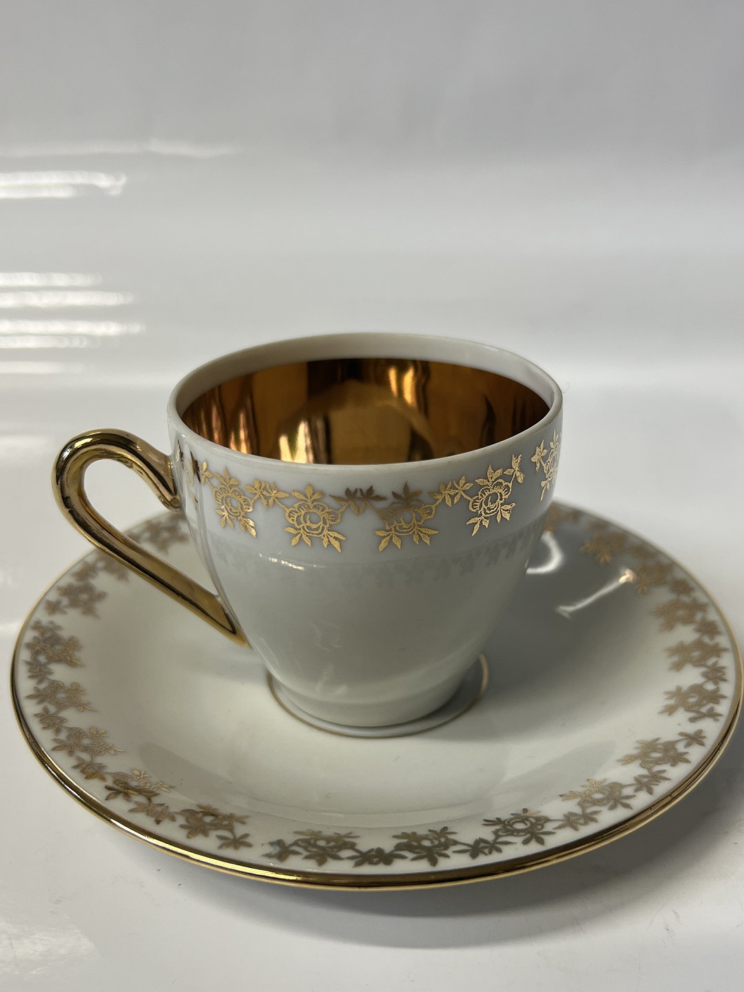 Gold rose, Espresso cup with saucer.The diameter of the cup is 5.9 cm., height 5.3 cm.