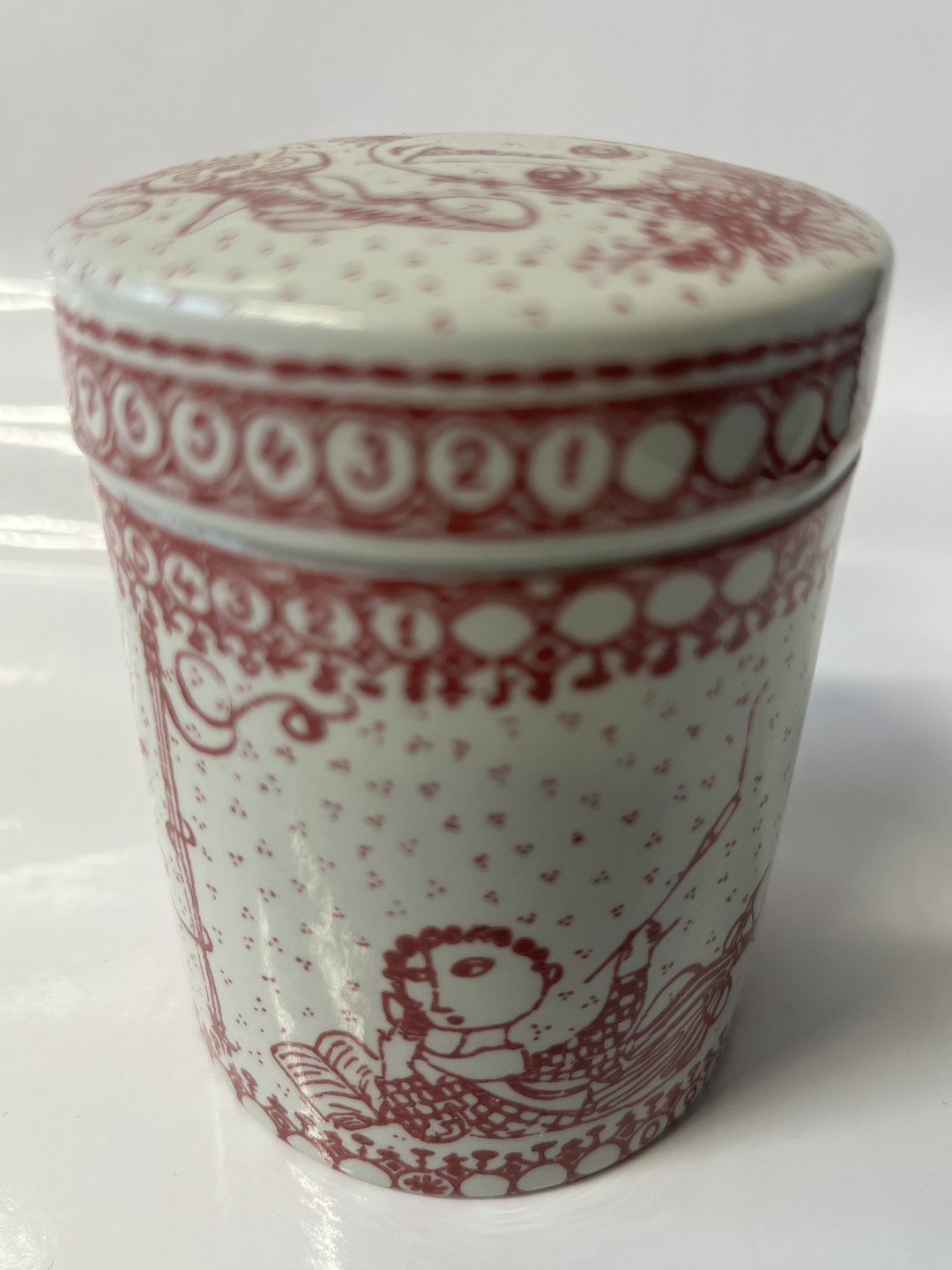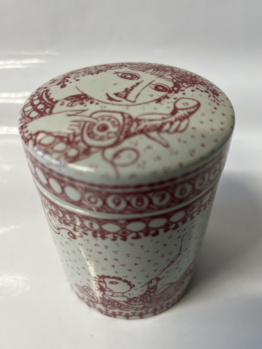 Bjørn Wiinblad ceramics made at Nymølle.Red tea can / bowl with lid from LM Ericsson.