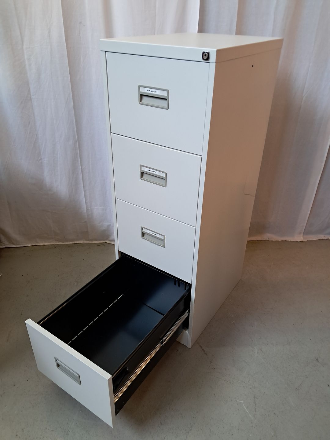 Malet metal kommode/arkivskab, fra 1990erne.Det har brugsspor og der medfølger ikke nøgle.