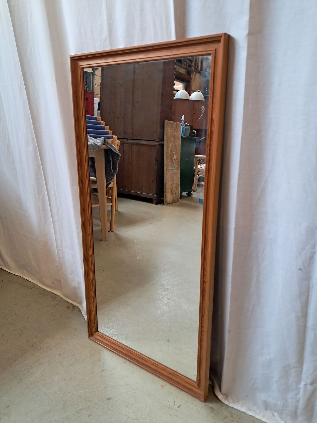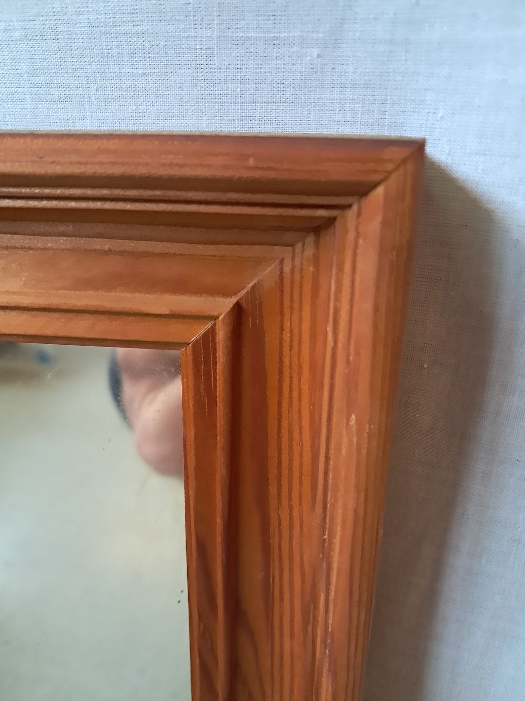 Spejl i ramme af fyrretræ, fra 1980erne.Det har brugsspor.