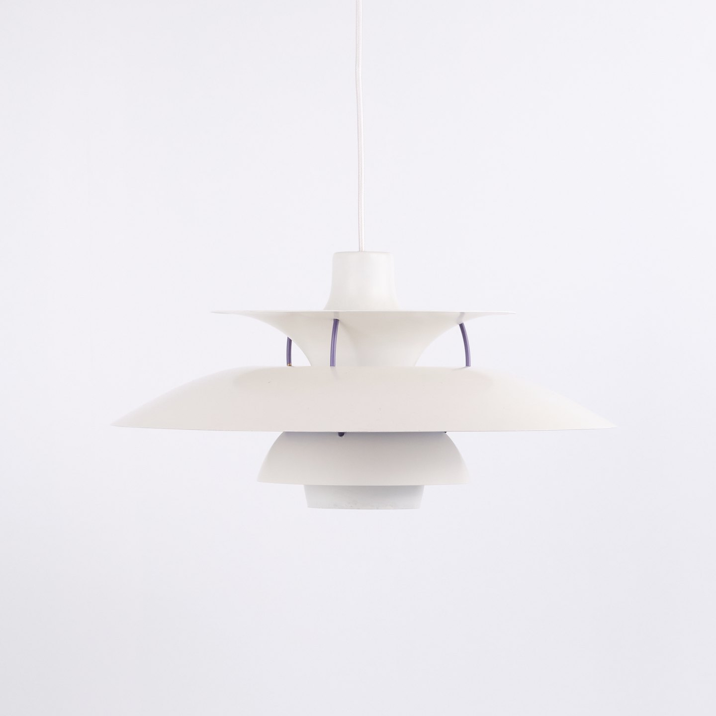PH 5 pendant in white lacquered metal from Louis Poulsen designed by Poul Henningsen. Classic Danish lamp with glare-free and functional light.— Origin: Denmark