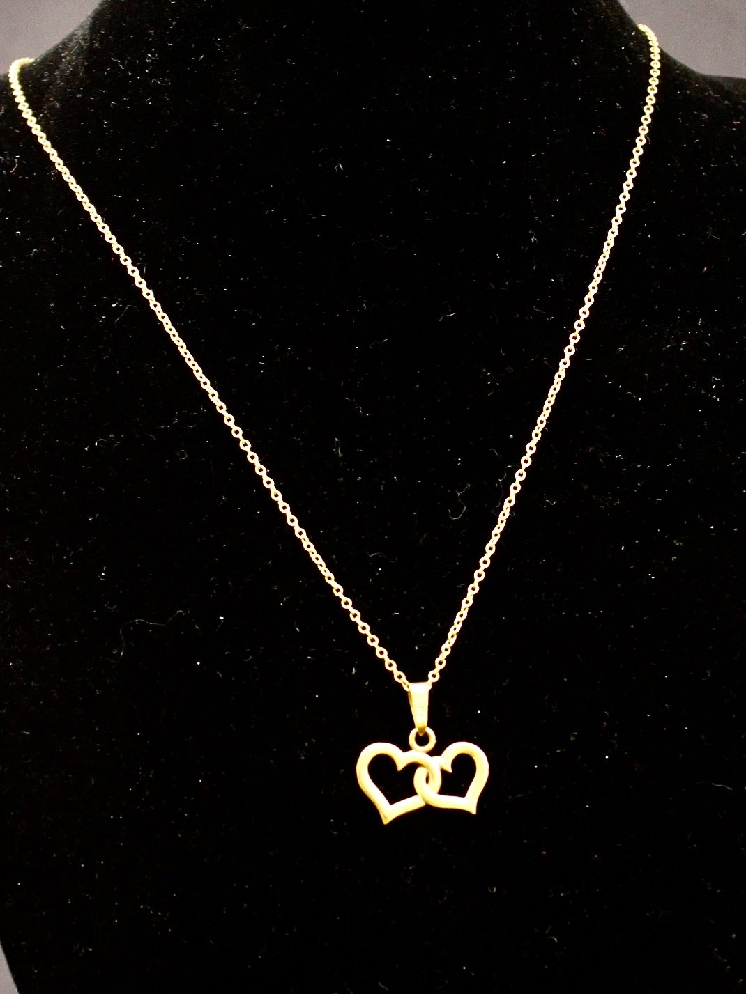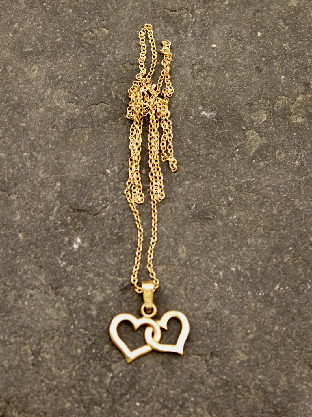8 carat gold hearts 1.3 x 1.9 cm. and 8 carat gold chain 42.5 cm. from goldsmith Herman Siersbol Copenhagen item no. 634141 Dealer