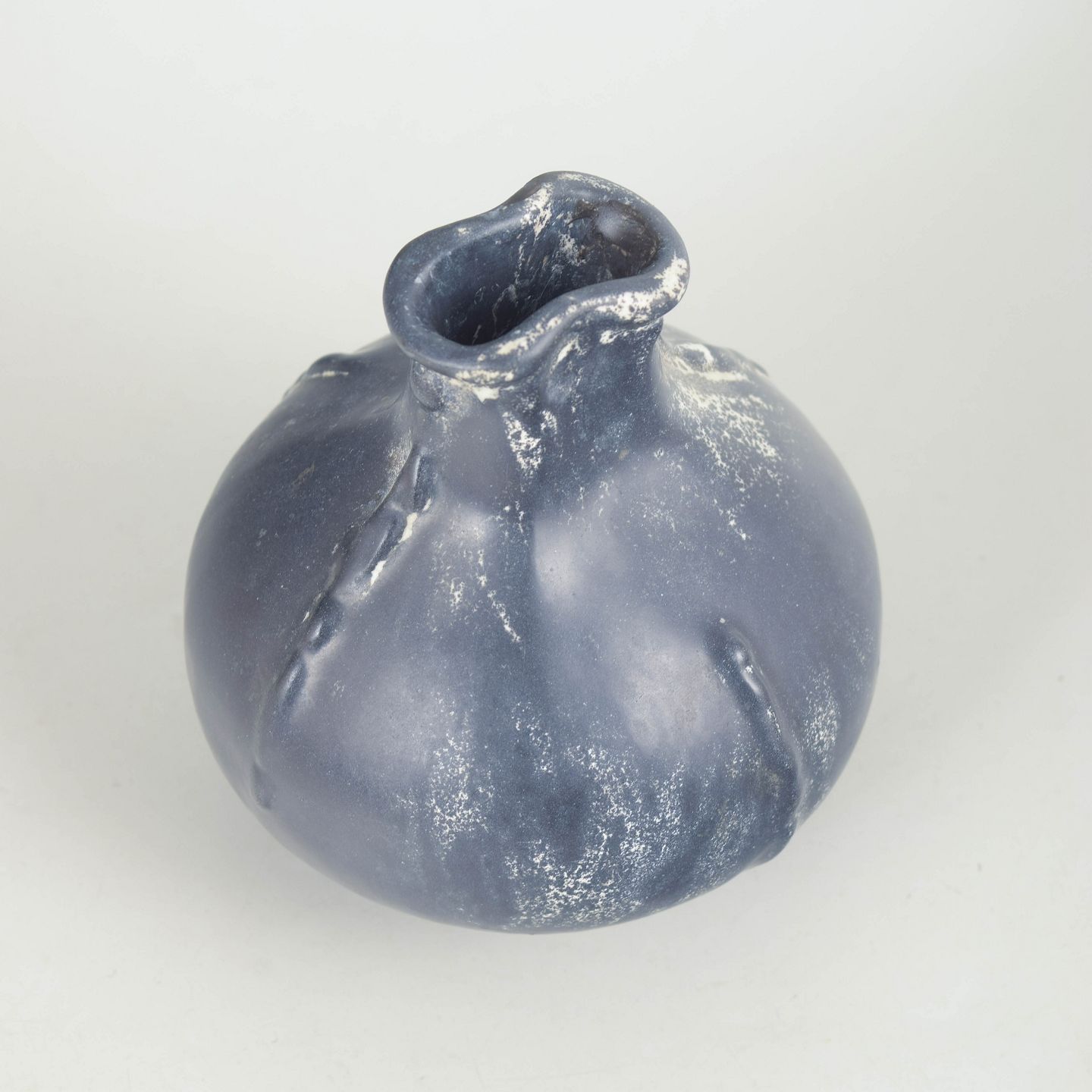 Svend Hammershøi for Kähler, vase with wavy rim and double glaze.Compact vase in glazed earthenware with a rounded body and characteristic wavy rim. Executed in a double glaze in dark grey and black tones with a subtle metallic sheen and lively surface variation.