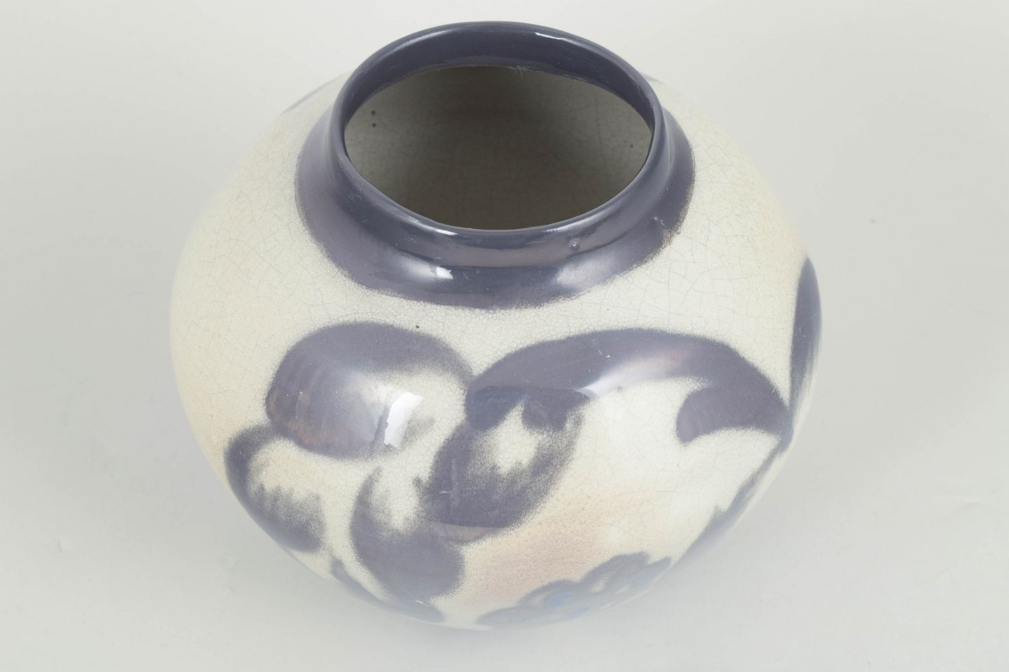 Edgar Böckman, unique vase.Organically shaped ceramic vase with a rounded body and hand-painted decoration in blue-violet tones on a light ground. Signed EB to the base.