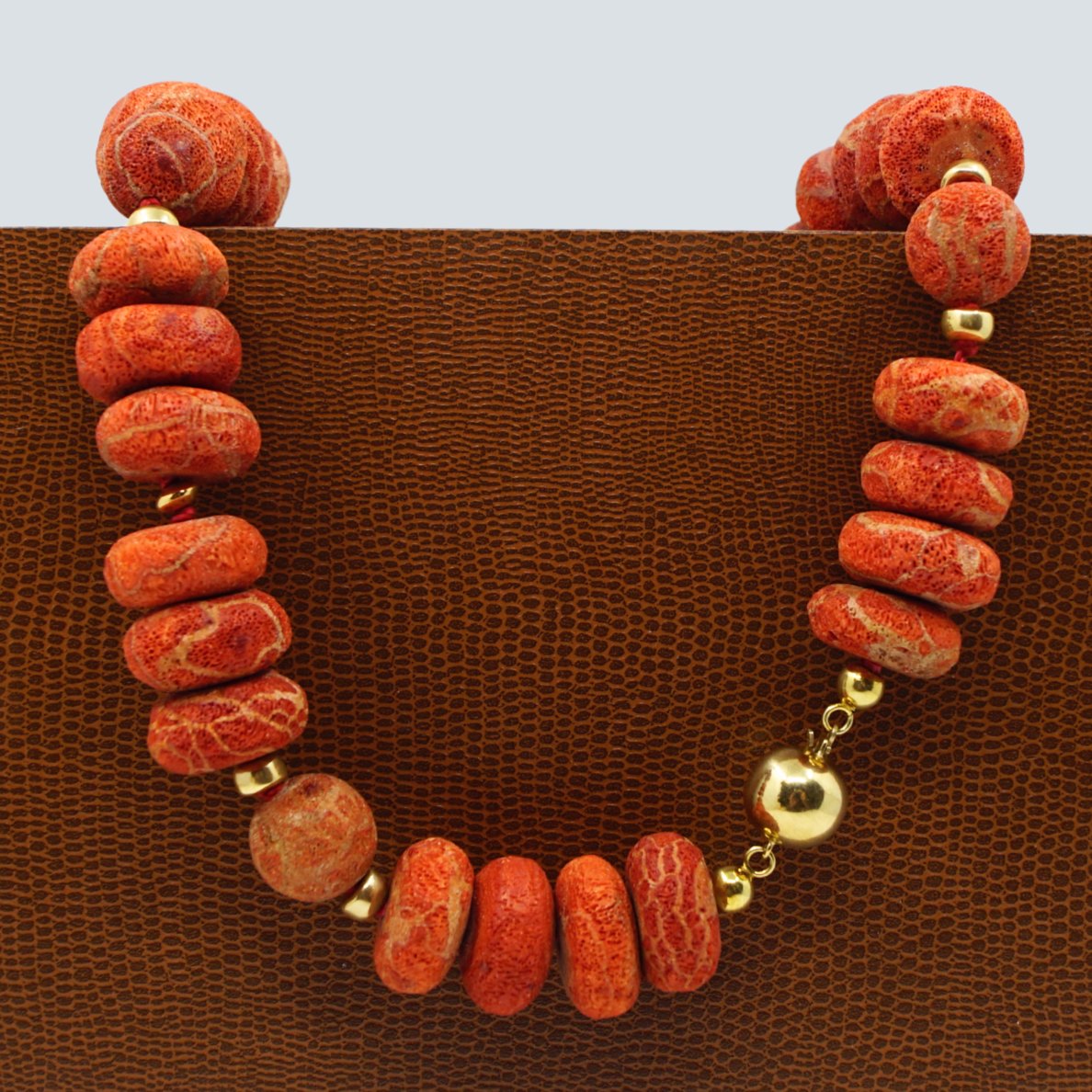 Necklace of coral, with 14k gold. With round clasp in 14k gold.L. approx. 51 cm.