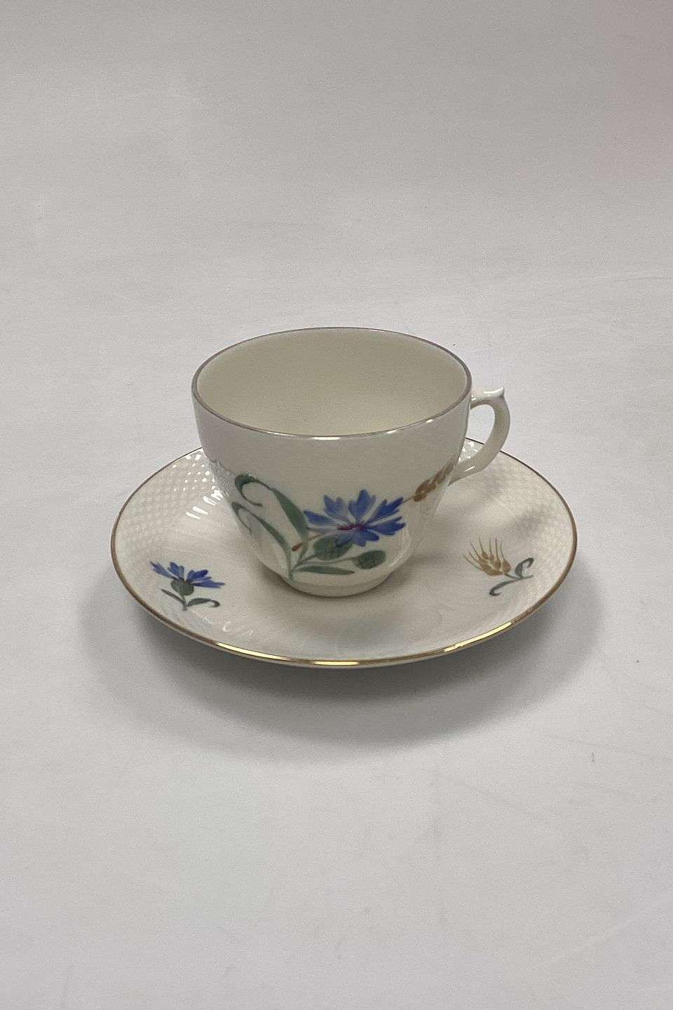 Royal Copenhagen Blue Cornflower Coffee Cup No. 1870Cream-colored frame with Blue Cornflower motifs and Gold rim