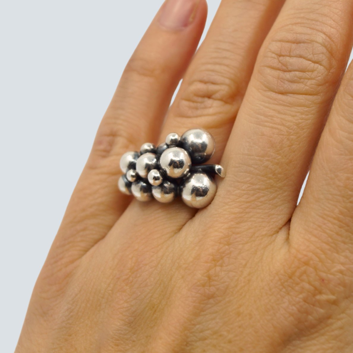 Georg Jensen; A Moonlight grapes ring in sterling silver. Ring size 51.Stamped "GJ 925 S 51".