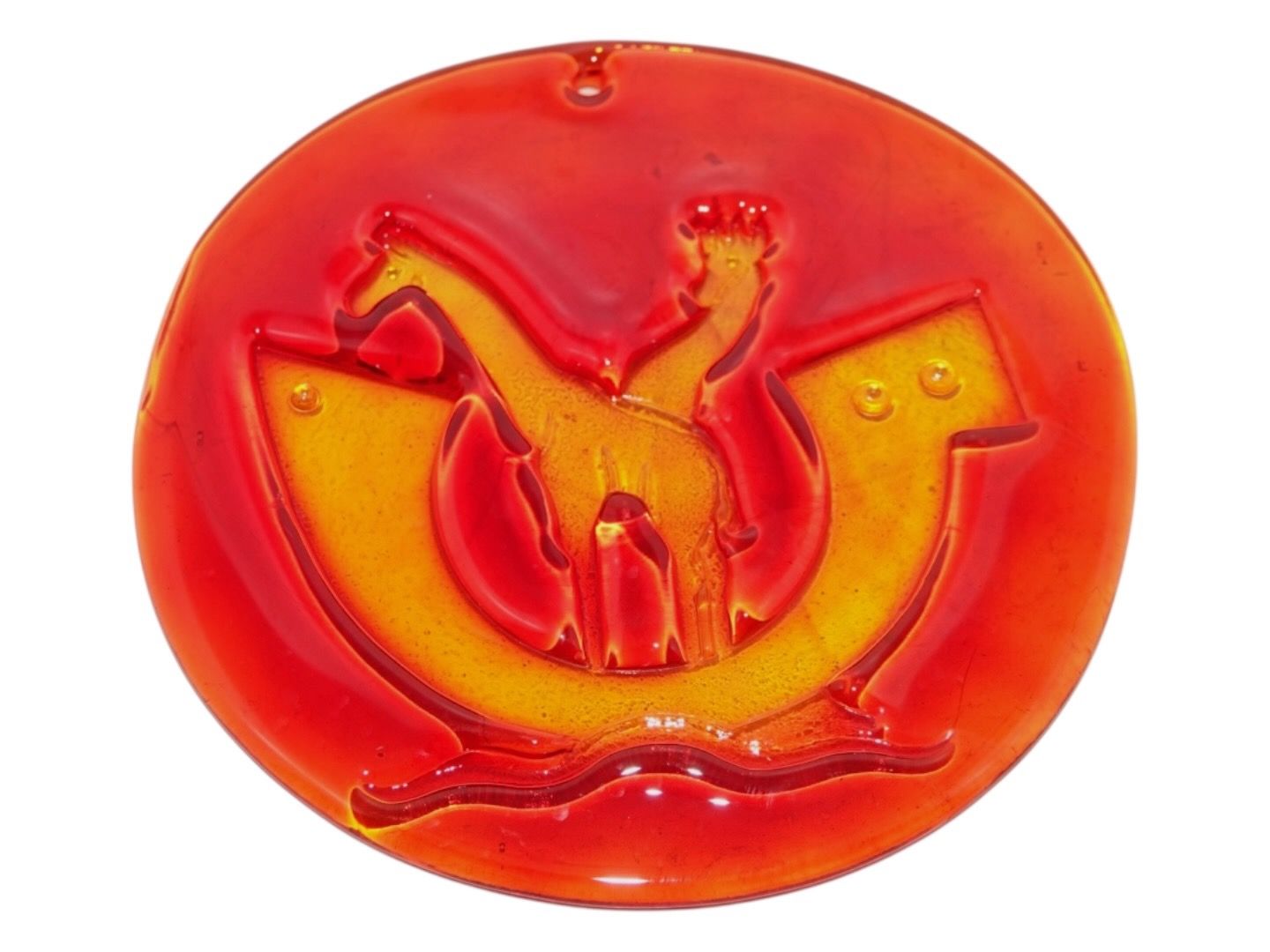 Holmegaard orange red suncatcher from the 1970'es.Diameter 14.0 cm.