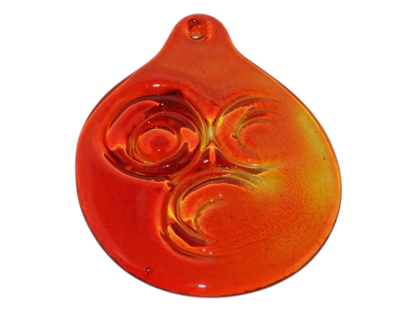 Holmegaard orange red drop shaped suncatcher from the 1970'es.Measures 16.5 by 12.5 cm.