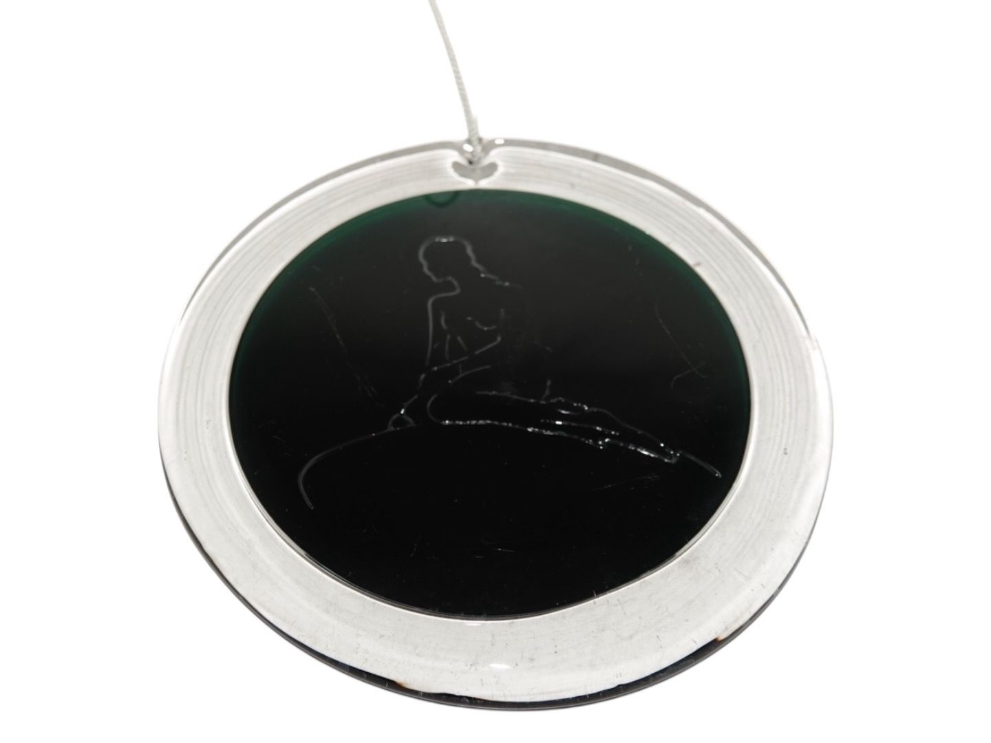 Holmegaard suncatcher with The Little Mermaid in clear and green glass.Designed by Ole Winther in 1976.