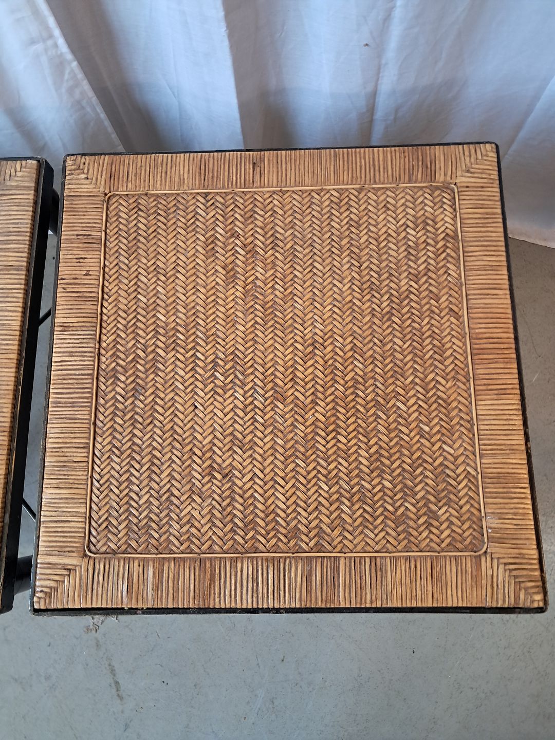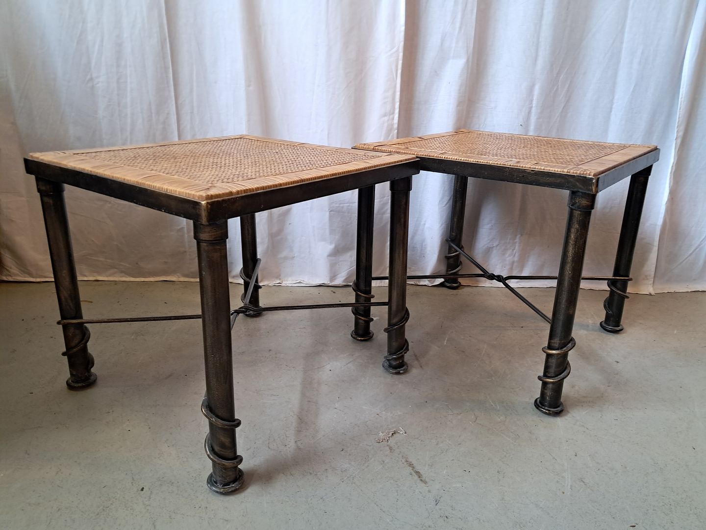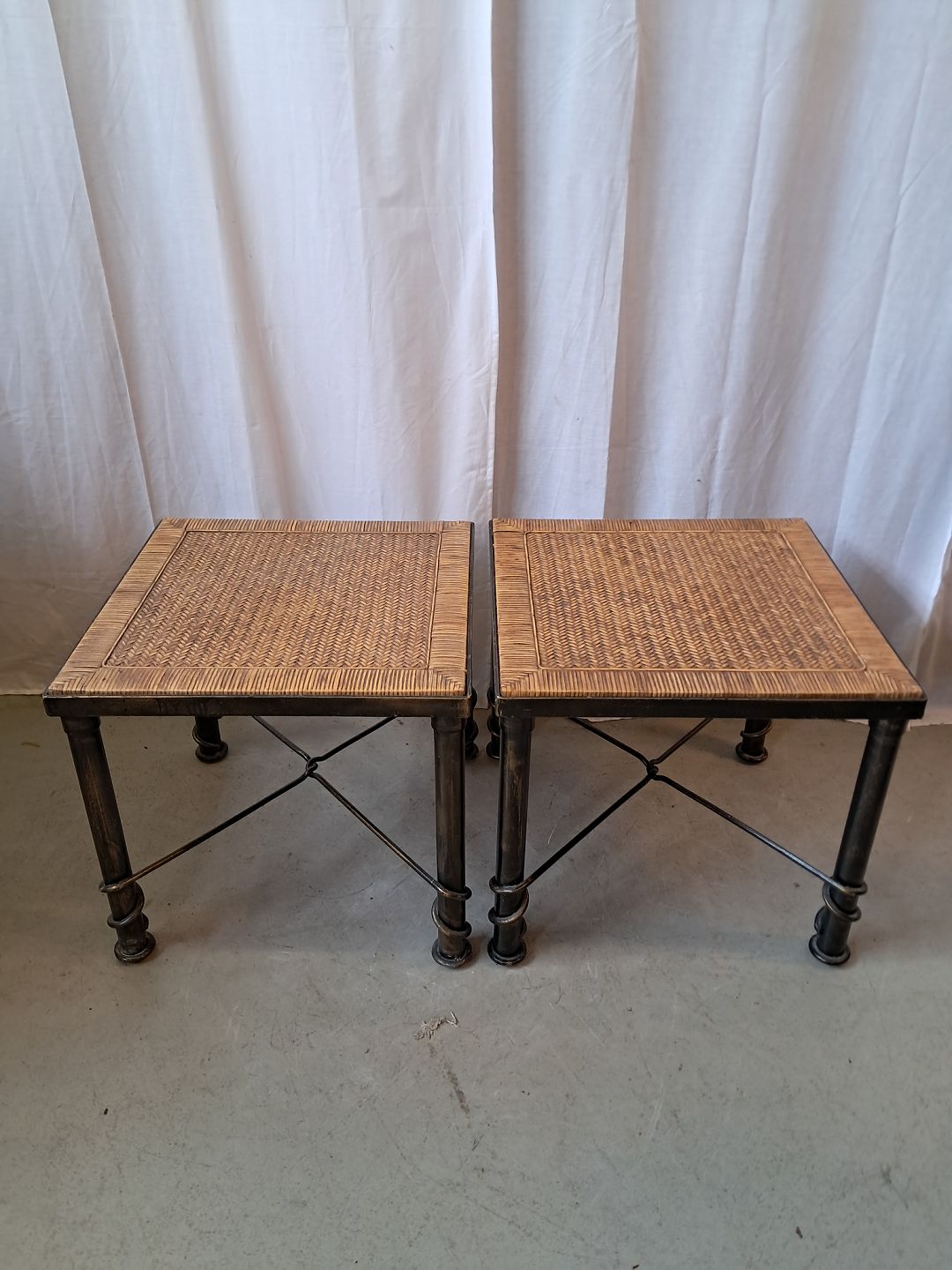 2 Lampeborde i metal og flet, fra 2000erne.De har brugsspor.