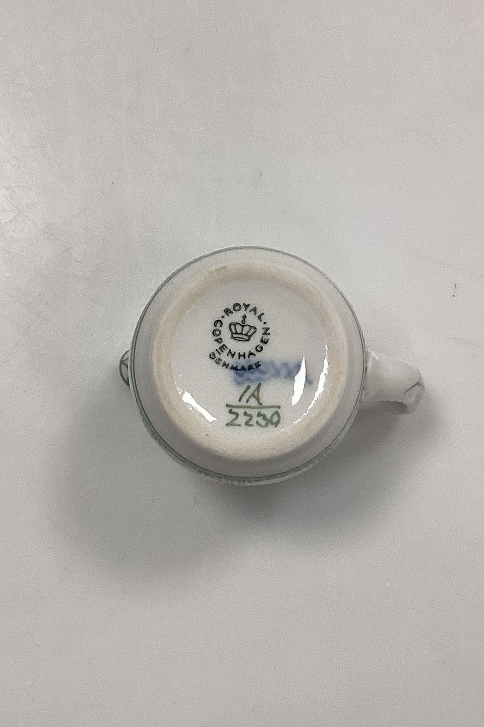 Royal Copenhagen Green Fluted Hotel Creamer No. 2230Marked as a 1st. quality.