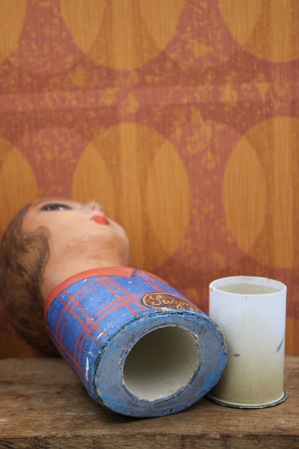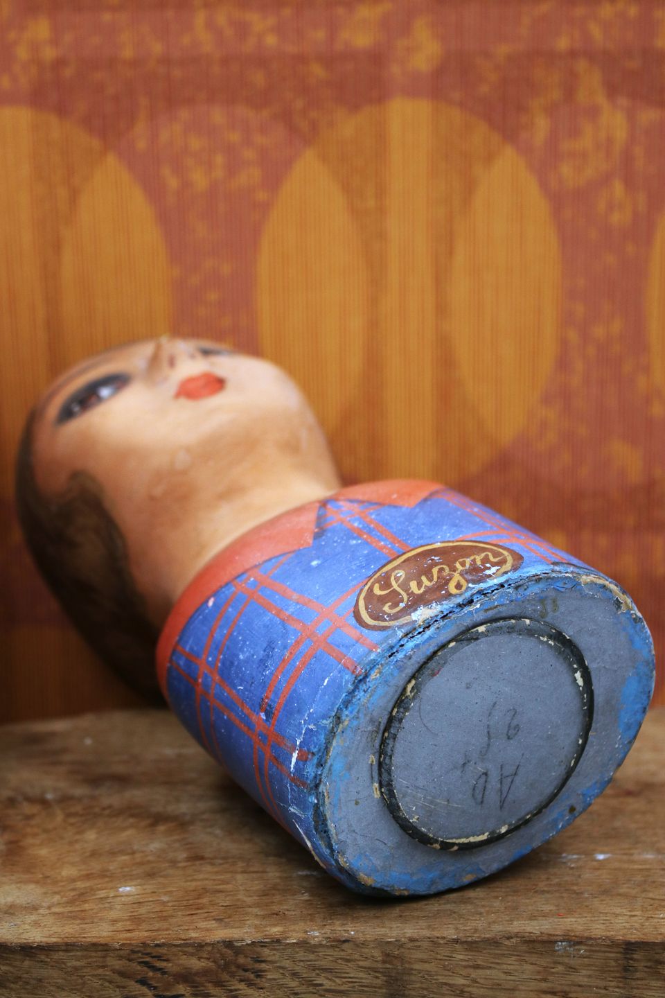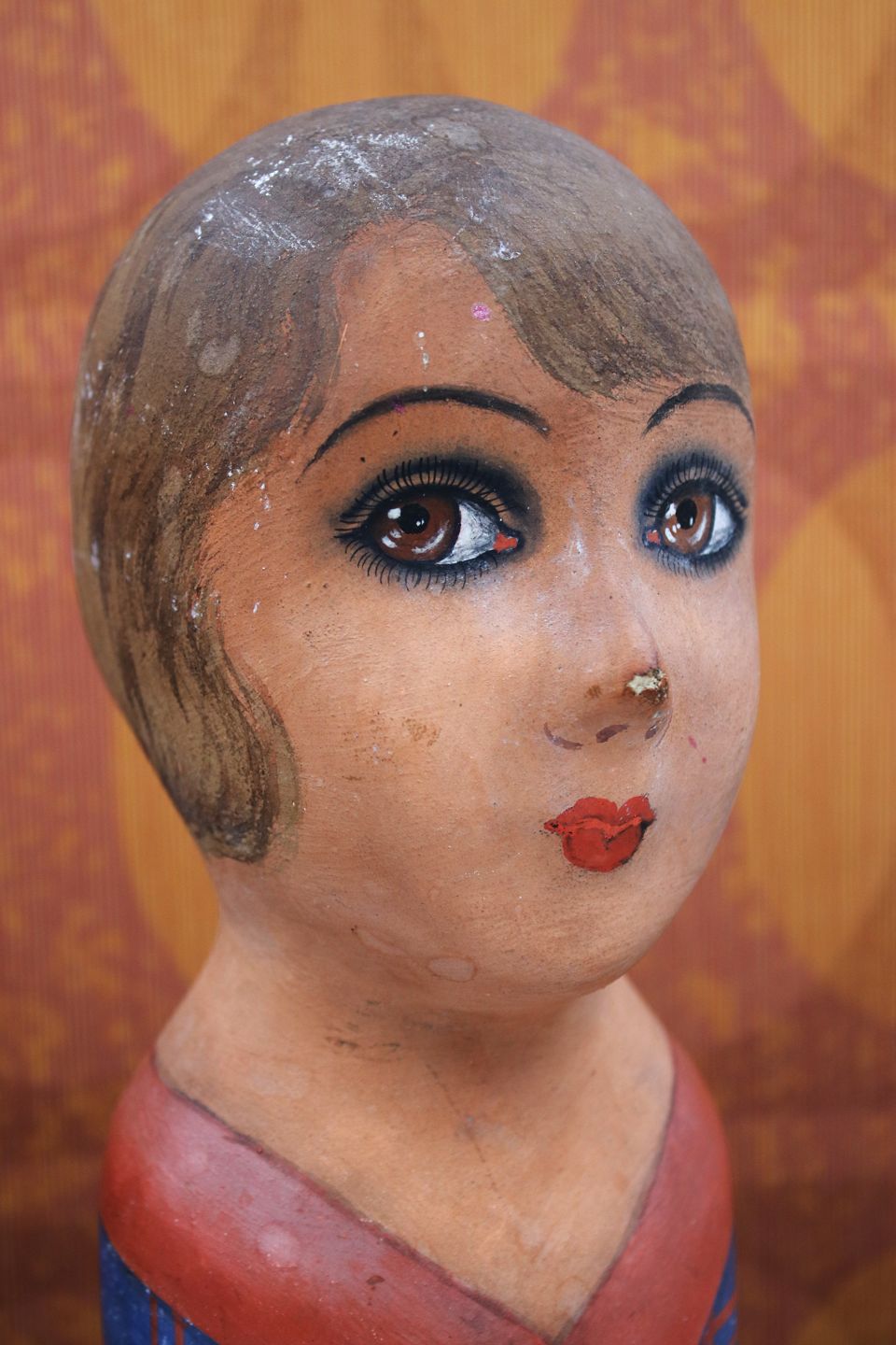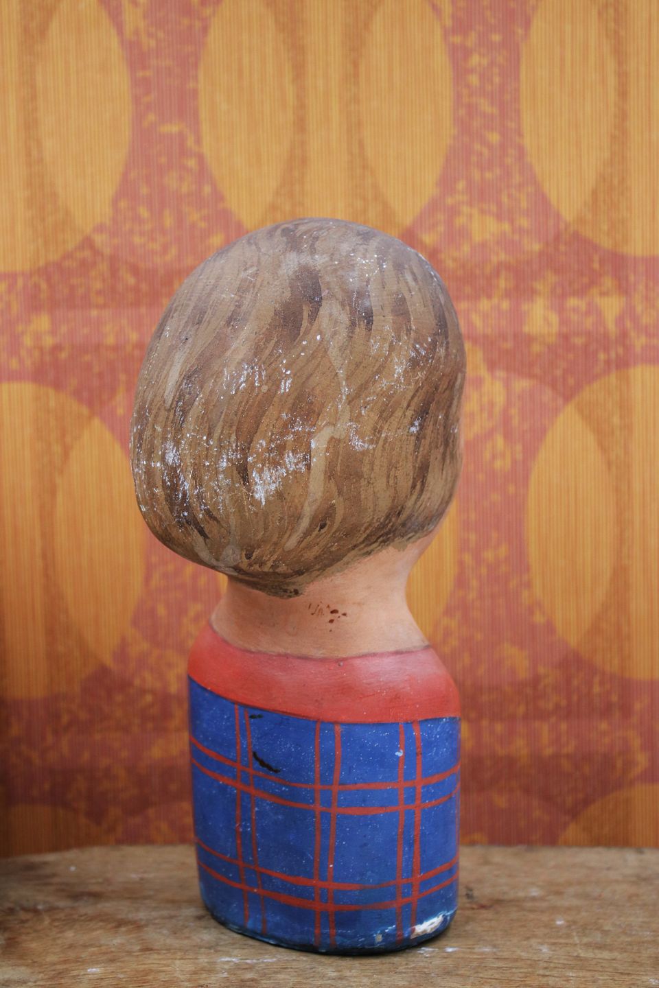 Original, antique French mini wig head (Millinery head) from the 1800s, painted papier-mâché with a nice old patina. H: 23cm.Item number: Antikt , mini paryk hoved