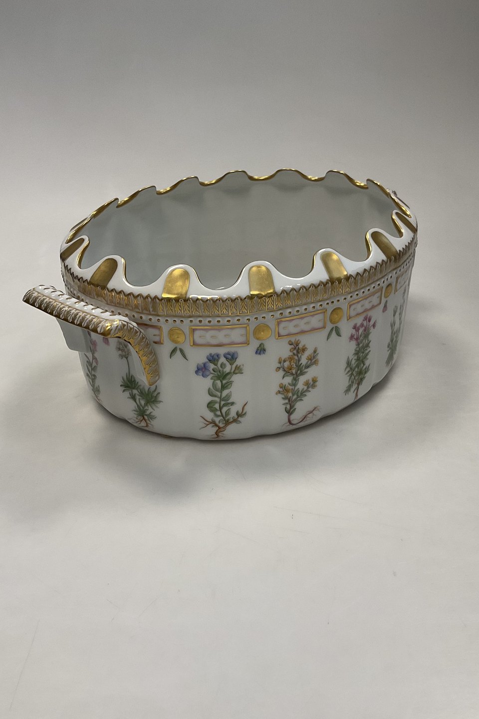 Royal Copenhagen Flora Danica Monteith No. 20/3531. Measures 33 cm x 24 cm x 12.5 cm / 13 in. x 9 29/64 in. x 4 59/64 in.Latin name: Scorzonera humilis L