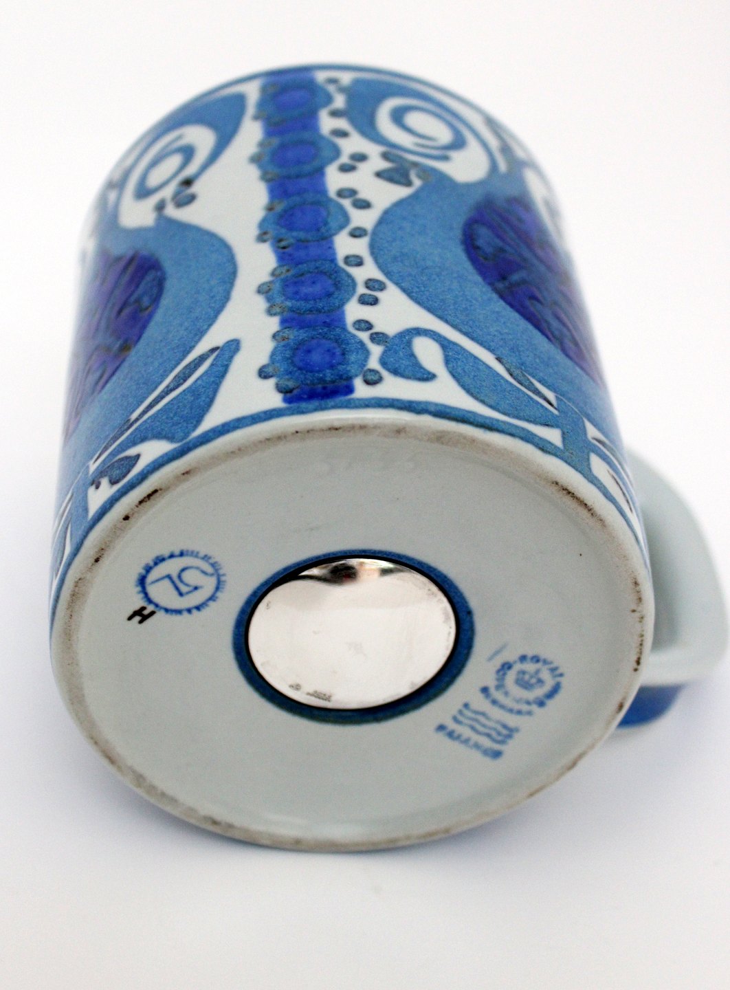 Royal Copenhagen, fajance, Stort årskrus 1969 med 925 sterlingsølv plaquette i bund. Kunstner Nils Thorson. Nr. 3135. Årskrusene er produceret fra 1967 og frem til 2014. Højde 11,5 cm. Diameter 10,5 cm. I. sortering. Flot stand. Pris: 500 kr. stk. Lager: 1 Dealer