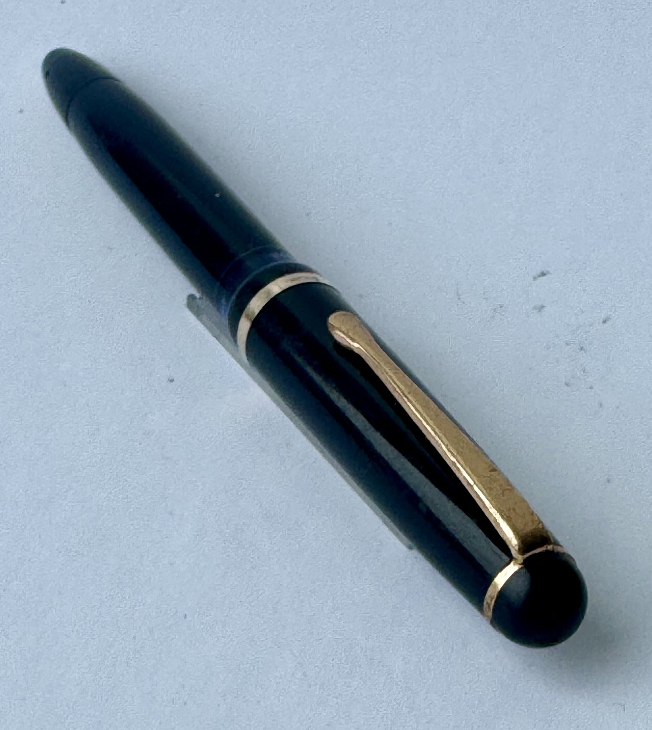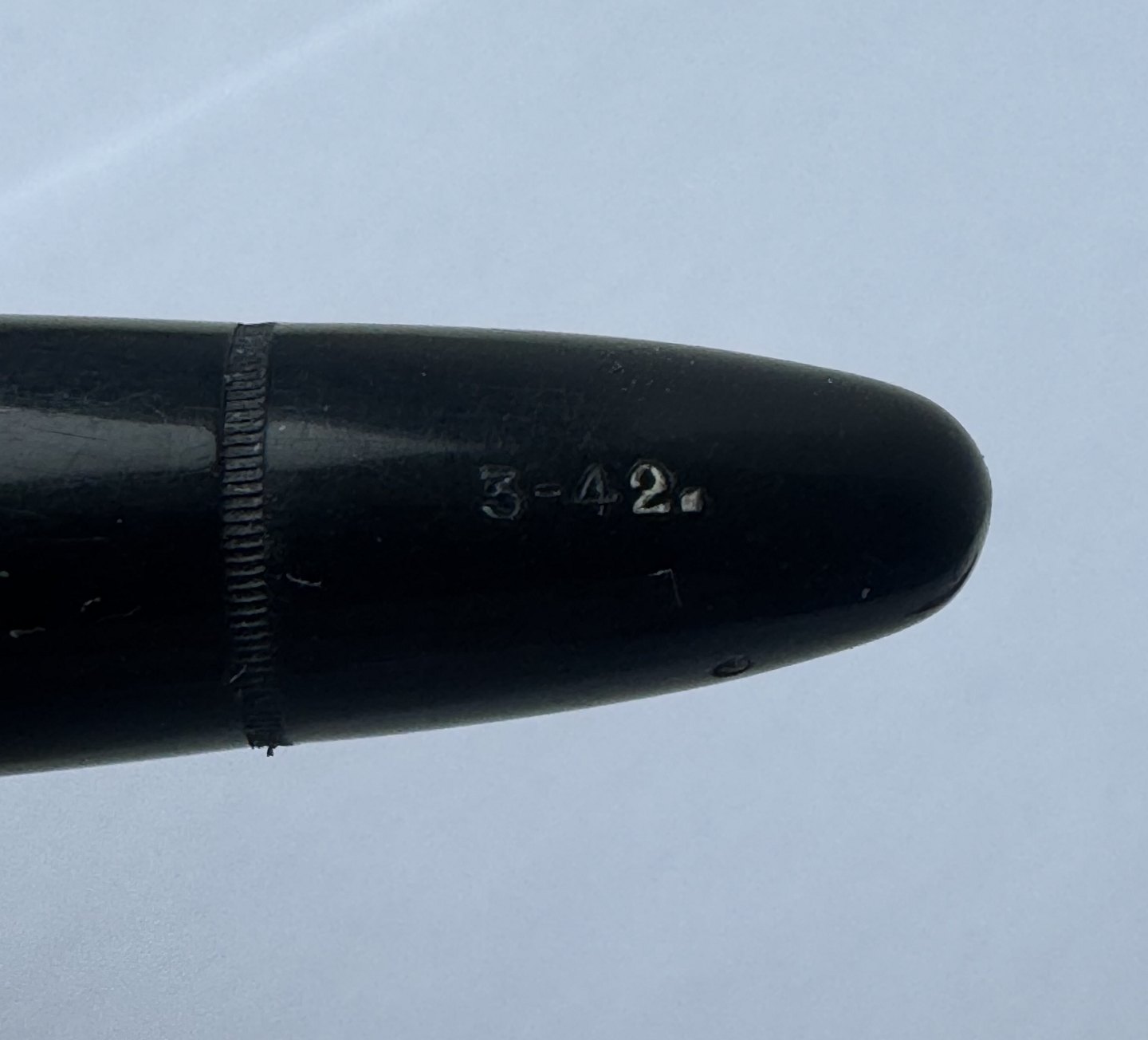 Black Montblanc 3-42 fountain pen from the 1950s. Piston filler. This mechanism works fine, which is why the pen is ready to be used. All parts original to this model. Including a no. 2 Montblanc steel nib. No damage or repairs. Length 12.7 cm Dealer