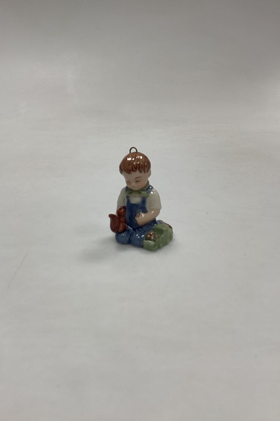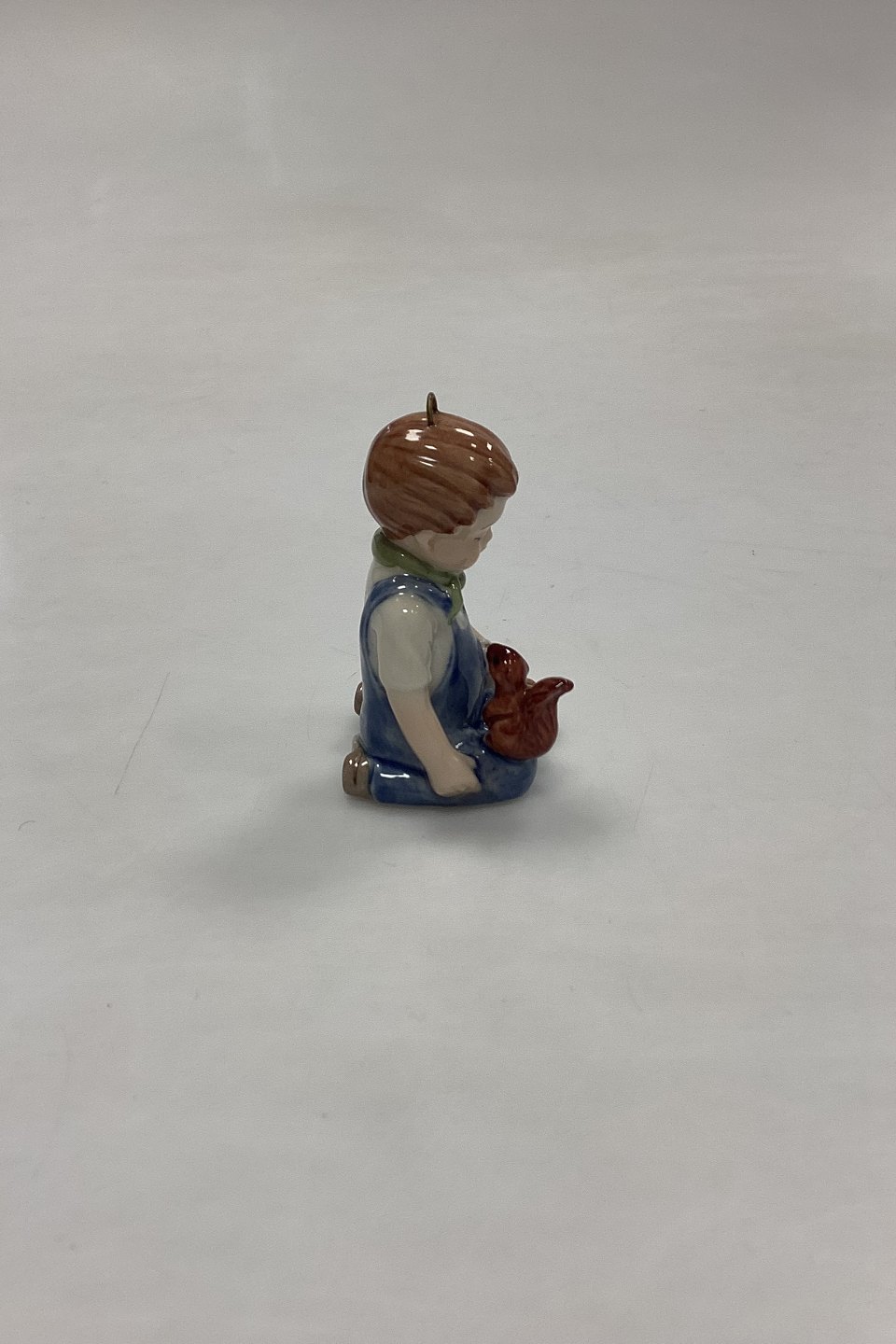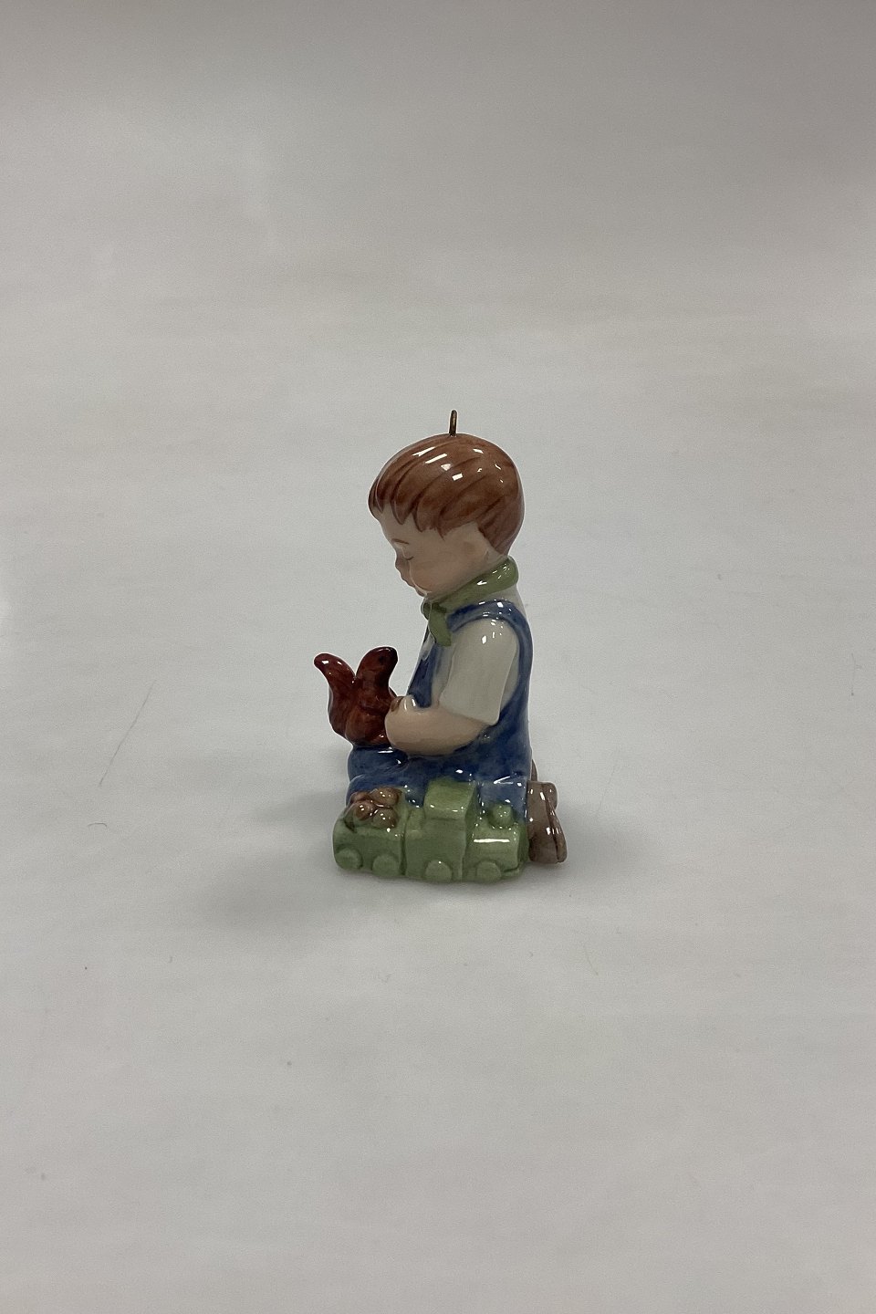 Bing and Grøndahl Collections 2001 Christmas Ornament - Christian No. 743. Designed by Sven Vestergaard. Boy with train and squirrel. Figurine for hanging.Measures 6 cm / 2.36 in.