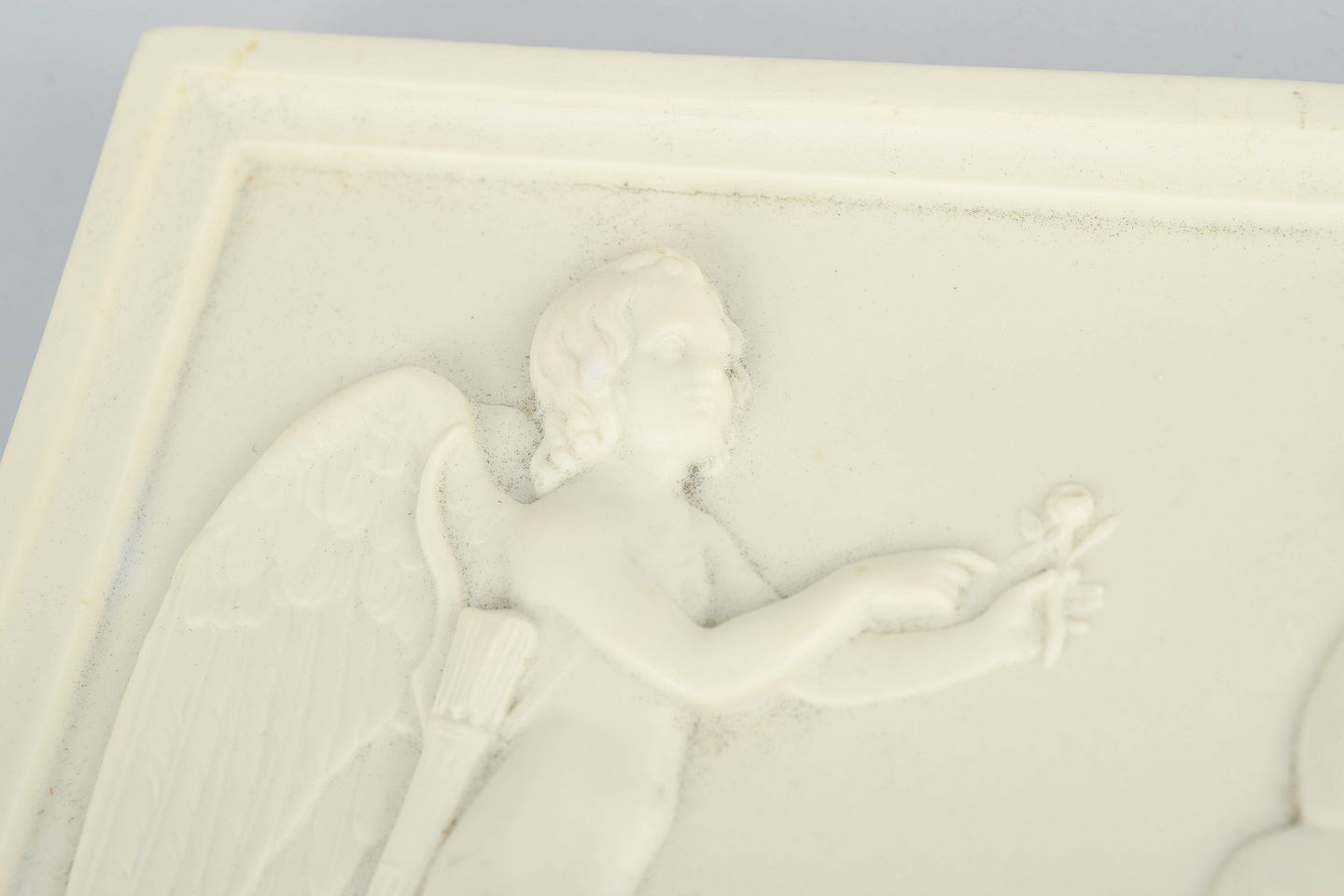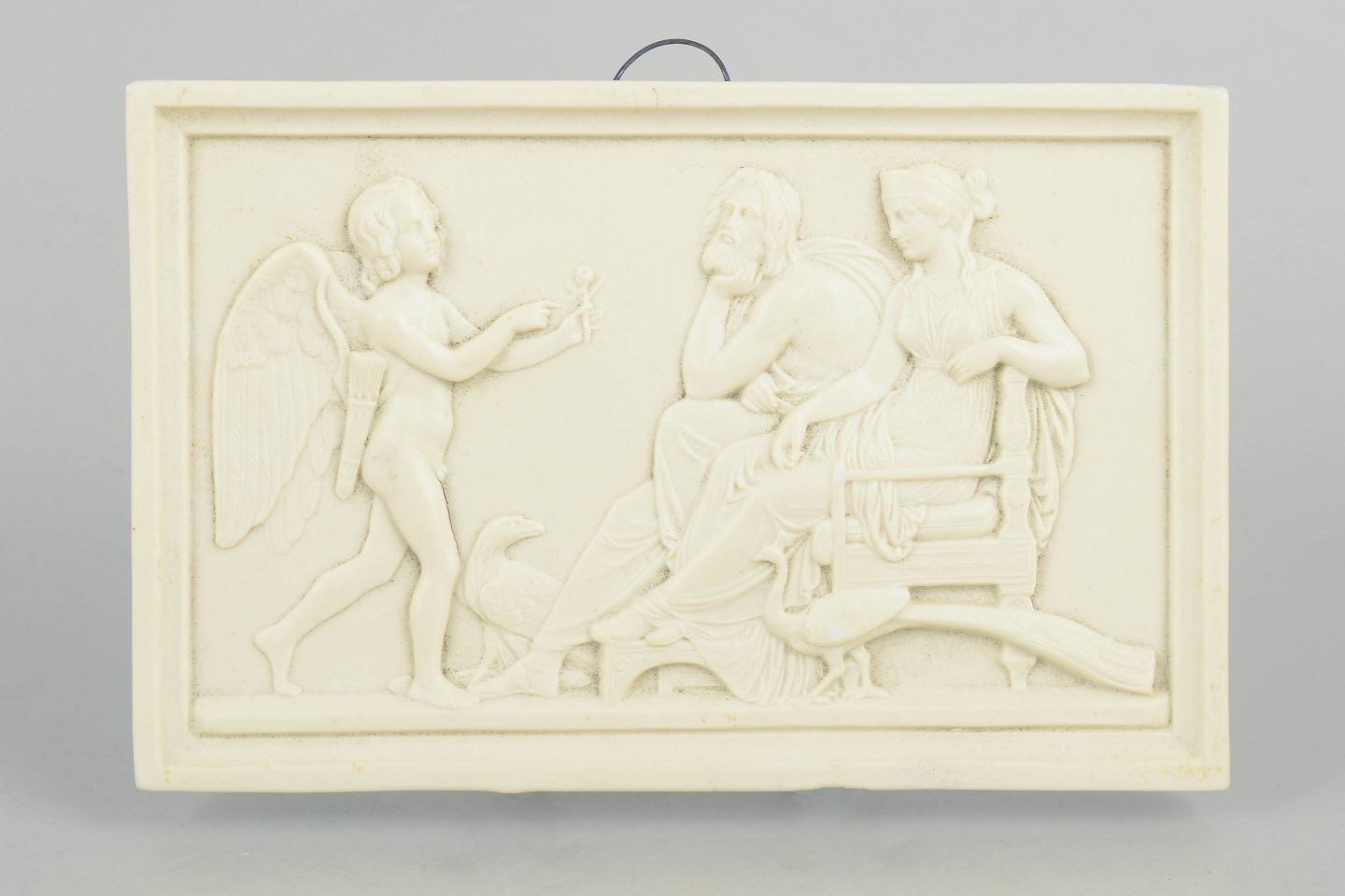 Bing & Grøndahl biscuit relief after Thorvaldsen, wall relief.Rectangular wall relief in white biscuit porcelain featuring a classical figural motif after Bertel Thorvaldsen, executed with refined detailing and soft modelling in the neoclassical style.