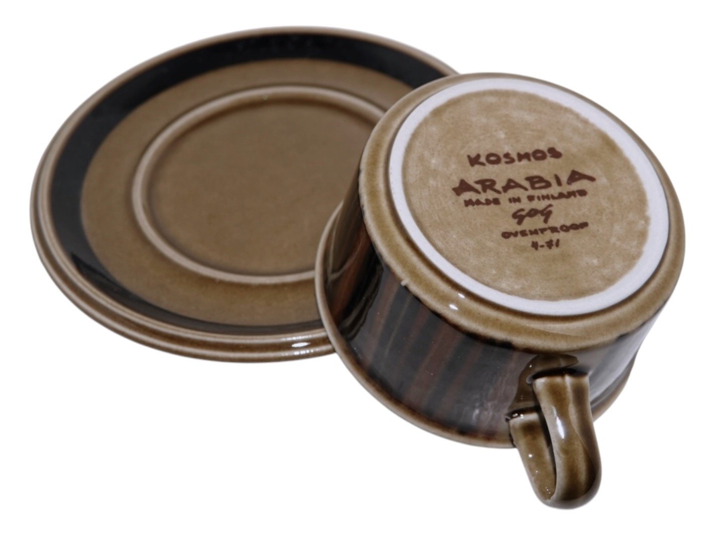 Arabia Finland Kosmos, teacup with matching saucer.Designed by Gunvor Olin-Grönqvist in 1962.