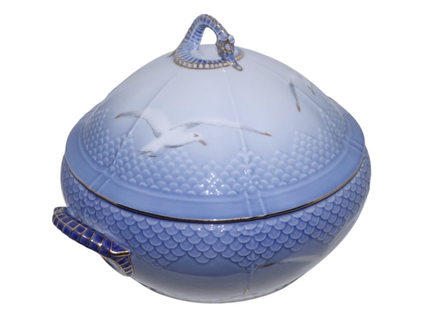 Bing & Grondahl, Seagull with gold edge, lidded bowl (small tureen).The factory mark shows, that this was produced between 1958 and 1962.