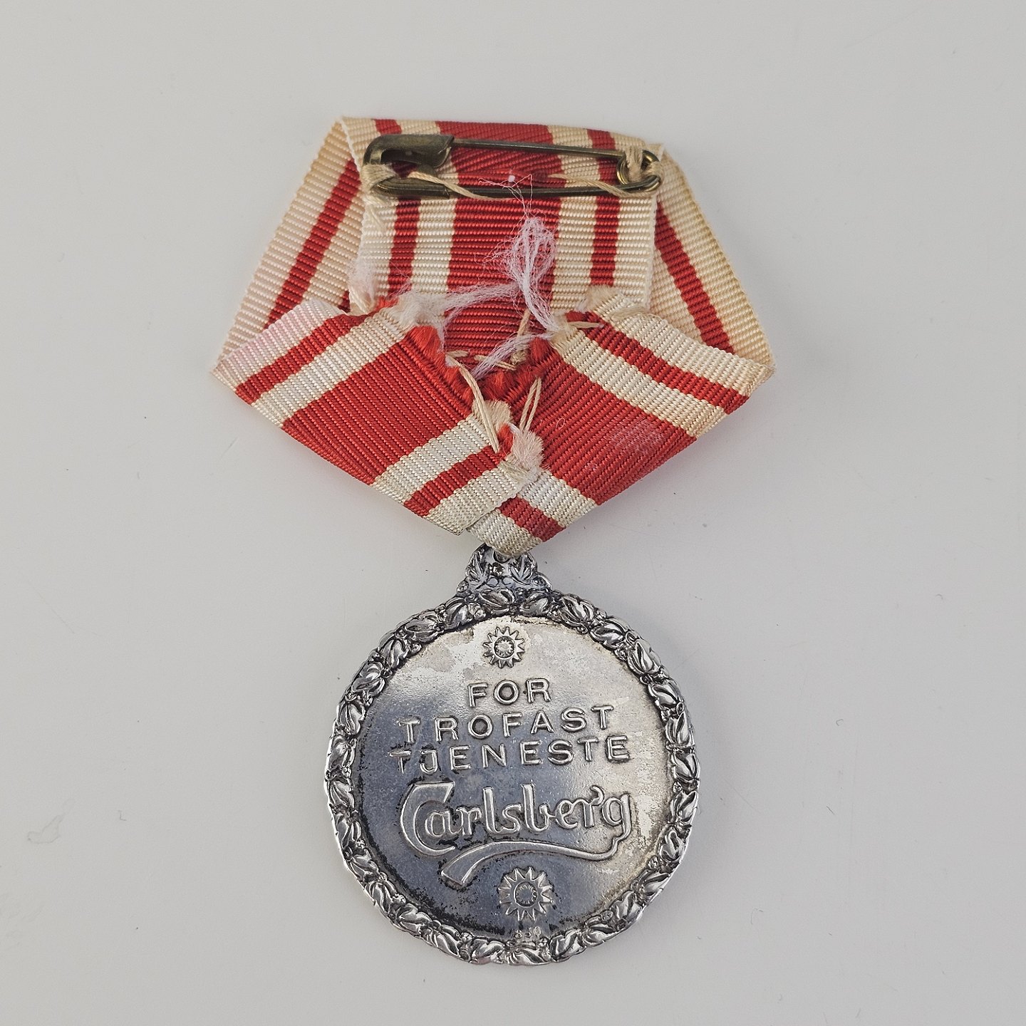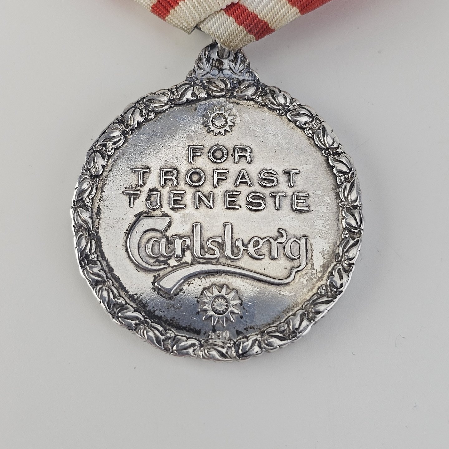 Medalje i sølv 999 med J.C. og Carl Jacobsen graveret på den ene side og "For trofast tjeneste" Carlsberg på den andenHøjde 8 cm
