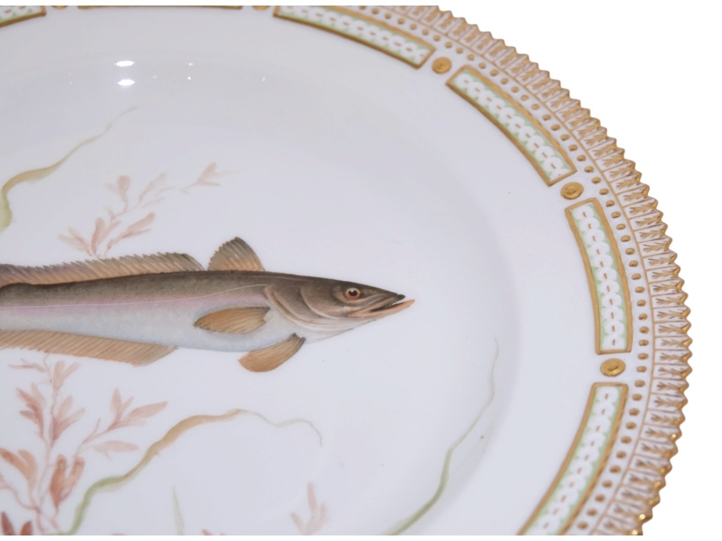 Royal Copenhagen Flora Danica, dinner plate decorated with a fish.Decoration number 20/3549.