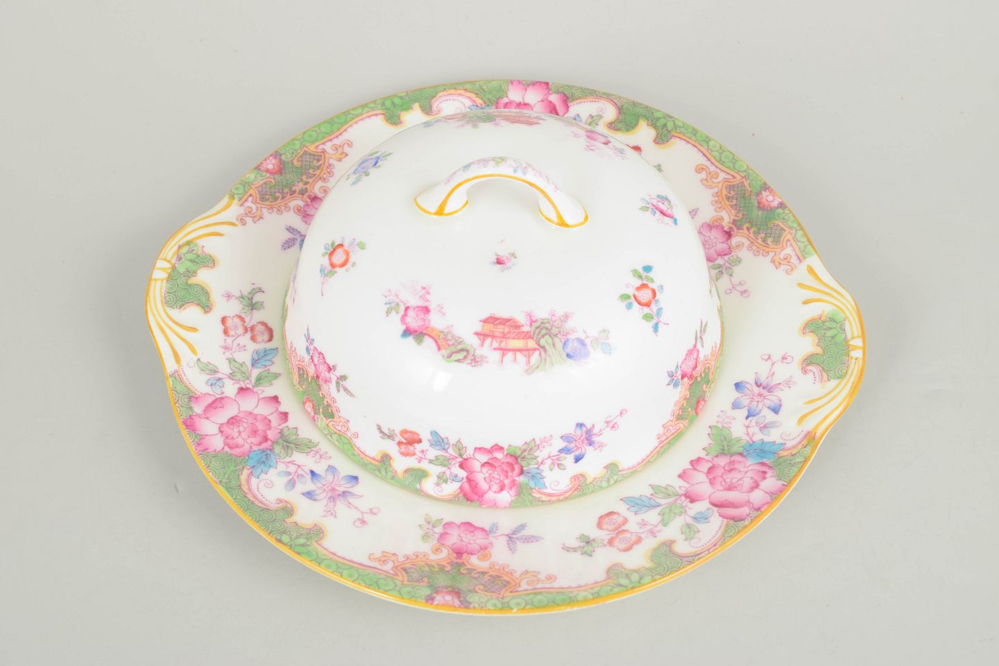 Royal Doulton "Temple" cheese dome.Decorative porcelain cheese dome with colourful floral decoration in the Temple pattern, consisting of a dome and matching base.