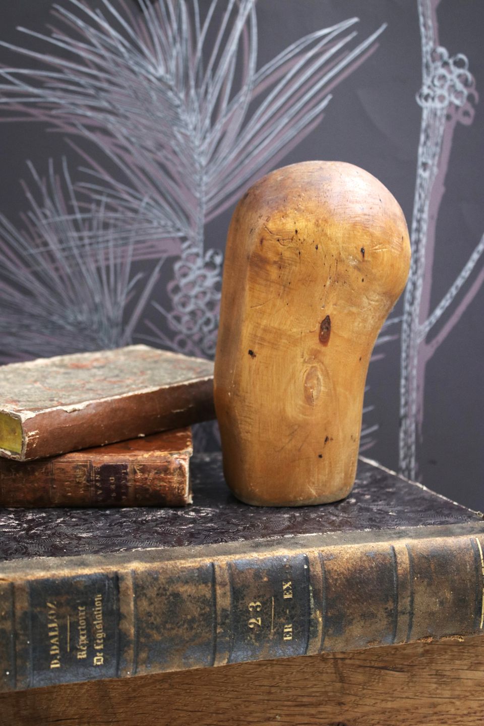 Decorative, antique mini hat head in carved wood with a really nice patina. Height: 17.5cm.