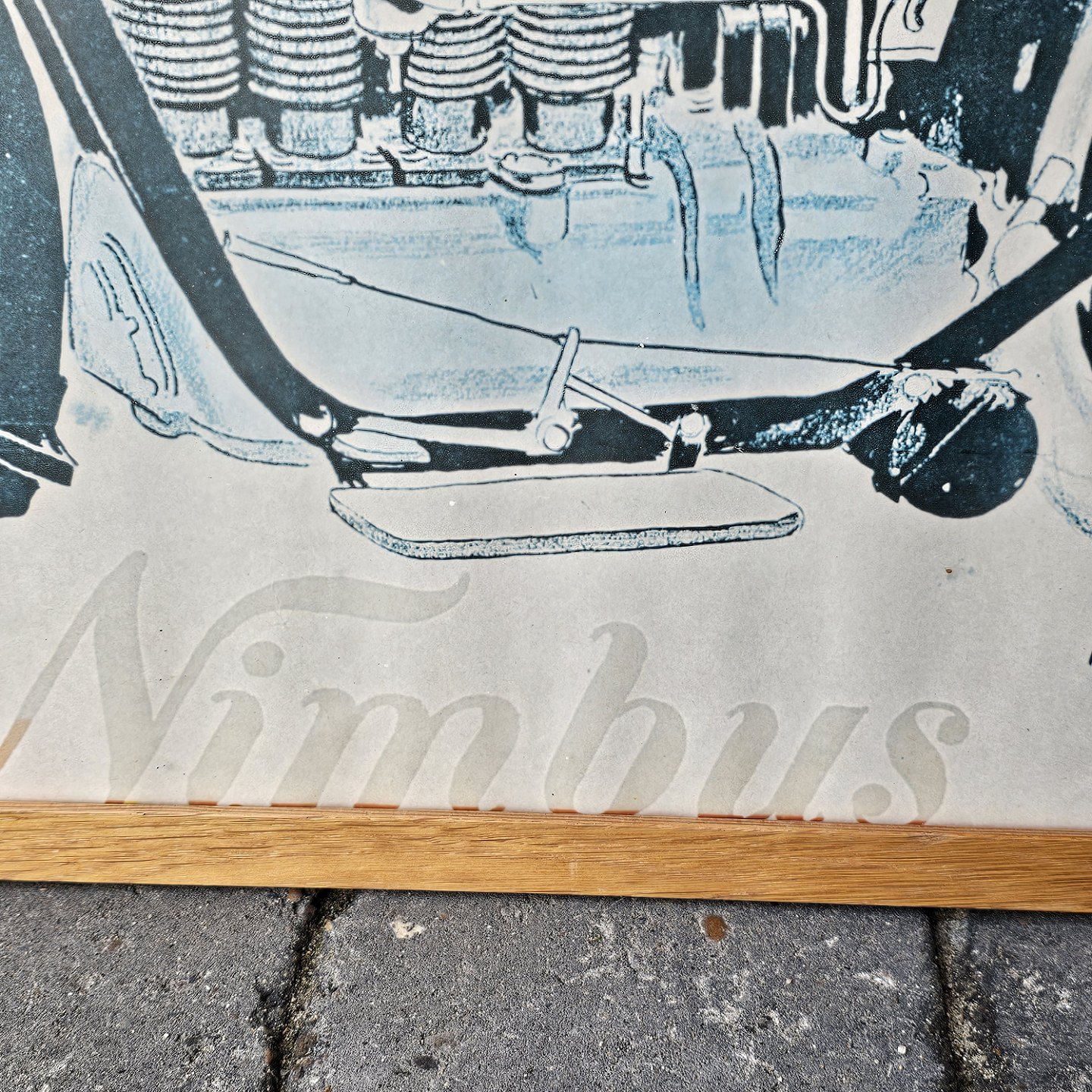 Reklame plakat i lys træramme for Fisker og Nielsens første Nimbus modelKunstner Valdemar Andersen (1875-1928)