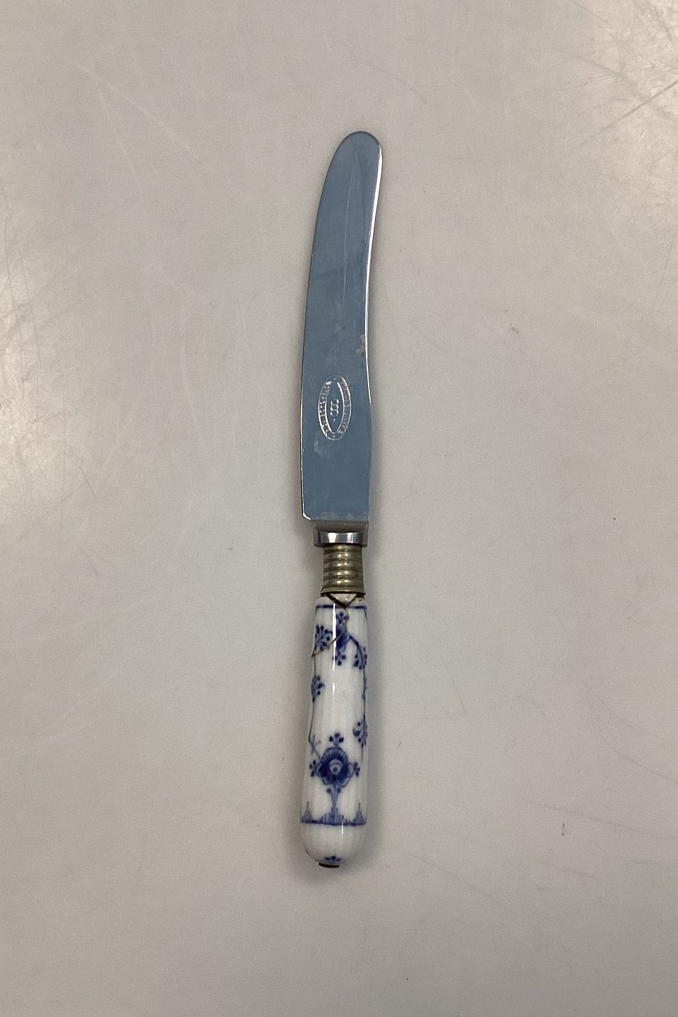 Royal Copenhagen Blue Fluted Plain Lunch KnifeHas cracks in the handle (see picture)