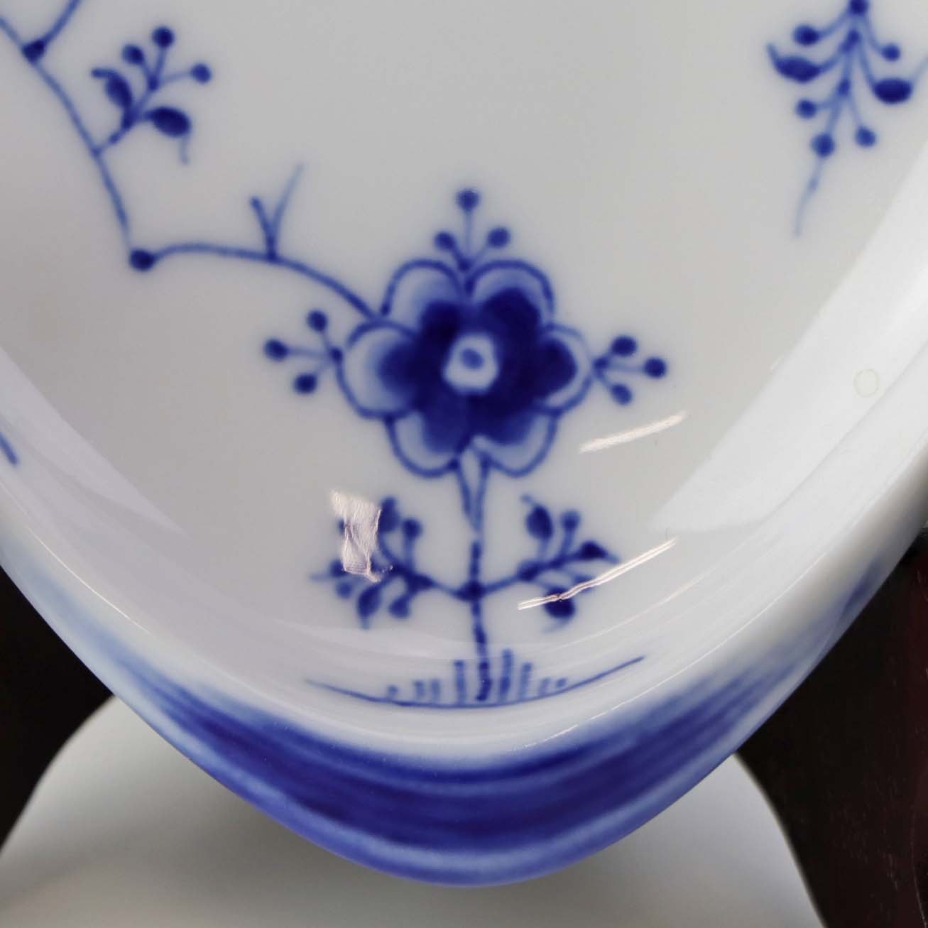 Muslingeformet kuvertasiet i porcelæn fra stellet Blåmalet. Nr. 200Producent Bing & Grøndahl