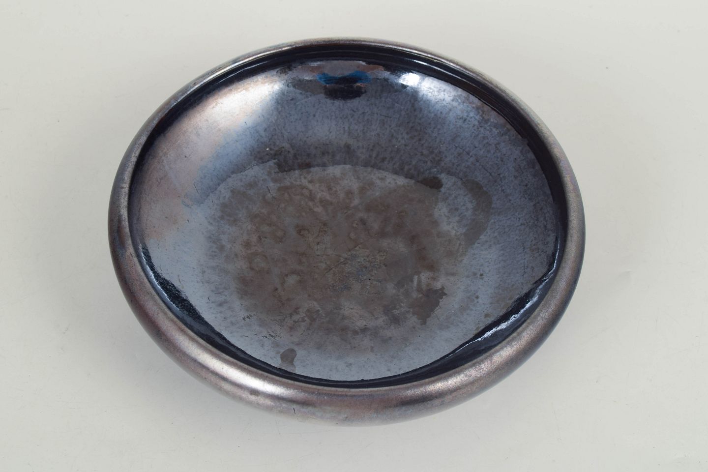 Svend Hammershøi for Kähler, bowl.Decorative stoneware bowl with a simple low form and characteristic luster glaze in dark tones with subtle variation across the surface. A classic example of Hammershøi’s refined design language and accomplished glaze work from the 1930s. Marked on the base.