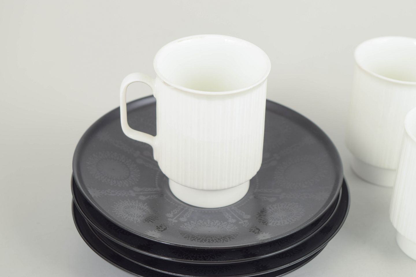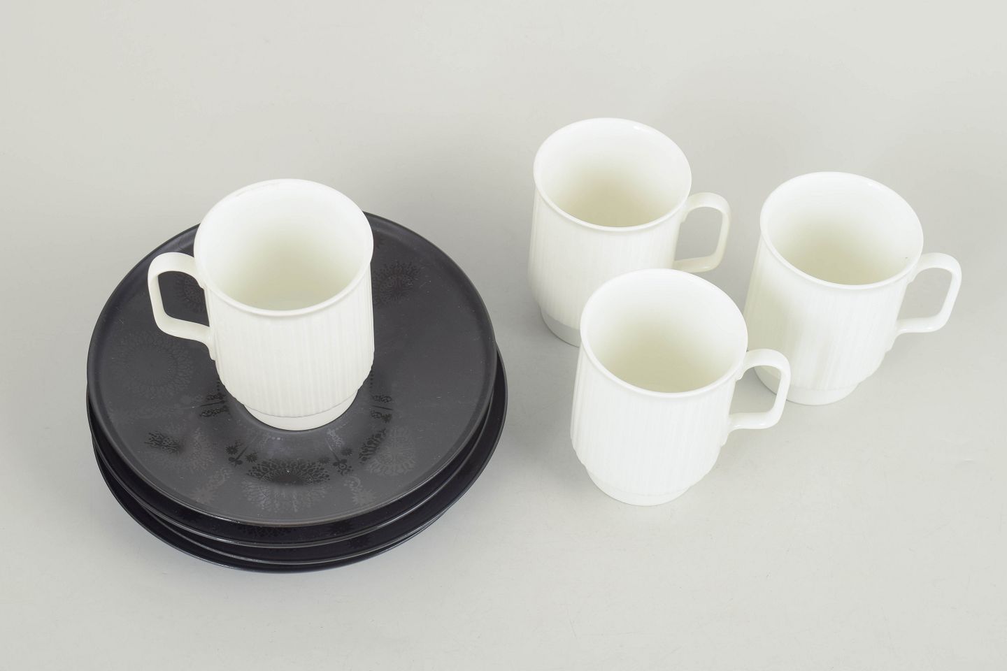 Tapio Wirkkala for Rosenthal, set of four demitasse espresso cups with matching saucers.Elegant porcelain espresso cups with matching saucers, designed in a refined and functional style characteristic of Tapio Wirkkala’s work for Rosenthal in the 1980s.