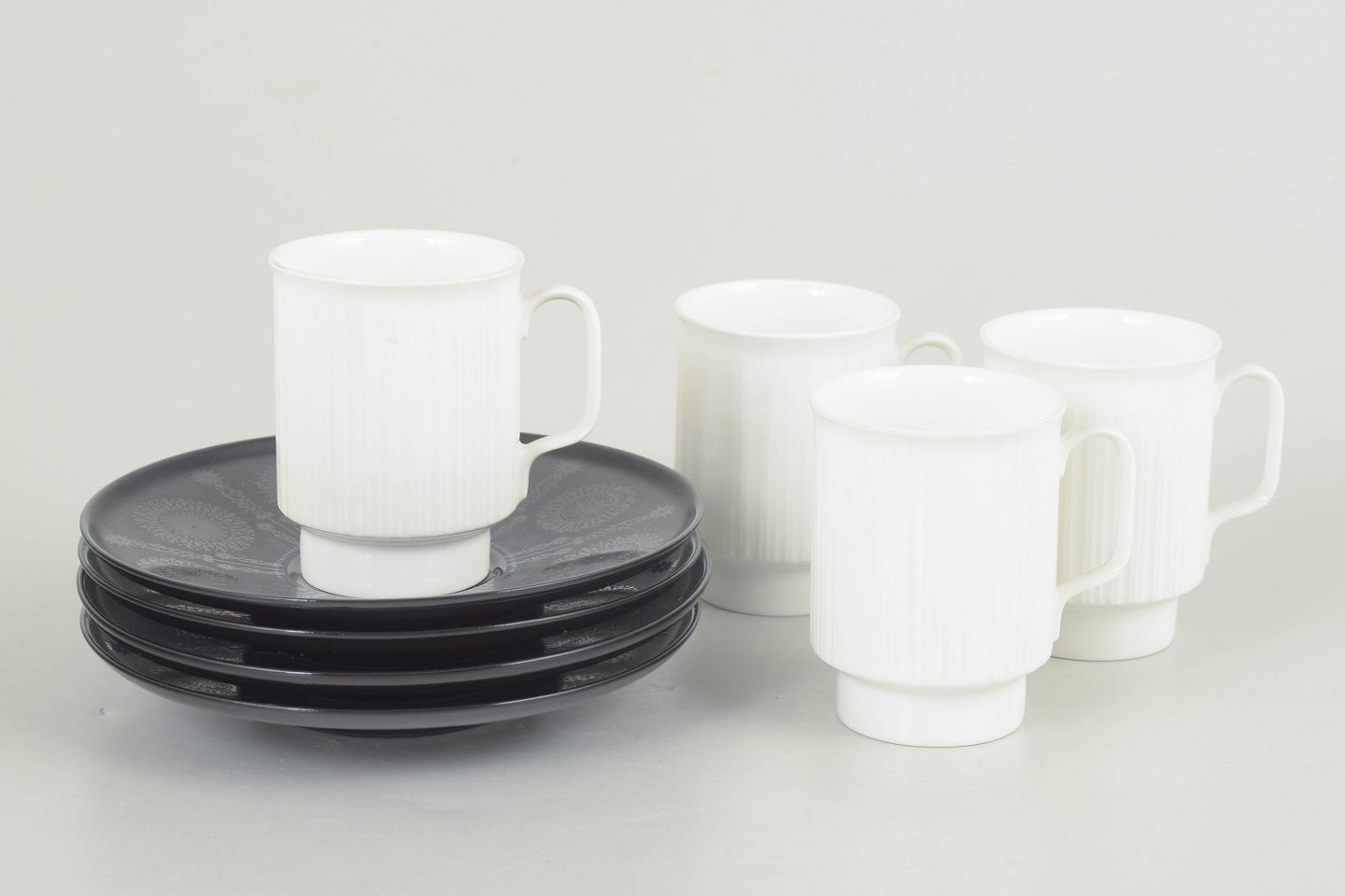 Tapio Wirkkala for Rosenthal, set of four demitasse espresso cups with matching saucers.Elegant porcelain espresso cups with matching saucers, designed in a refined and functional style characteristic of Tapio Wirkkala’s work for Rosenthal in the 1980s.