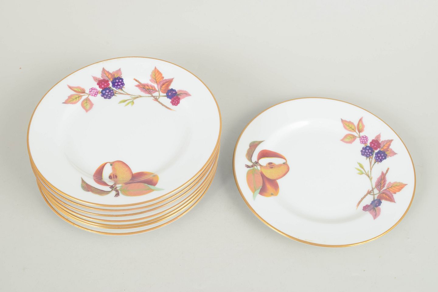 Royal Worcester Evesham, set of eight cake plates.Decorative porcelain with classic fruit decoration in warm tones and a gilt rim. Evesham model.