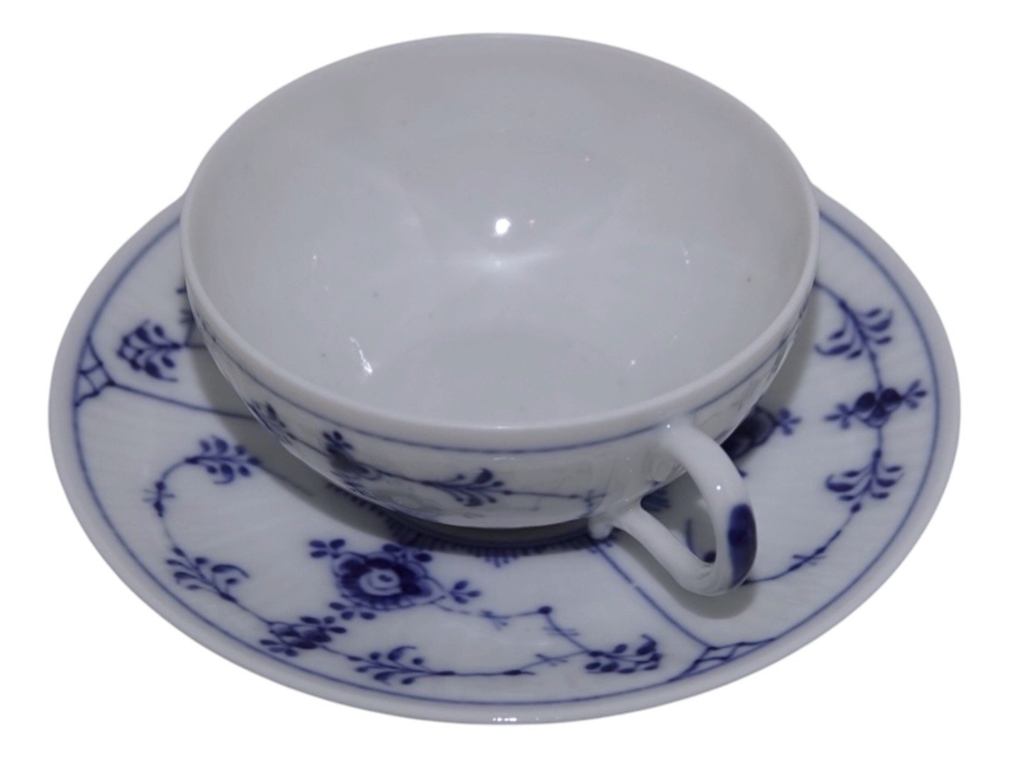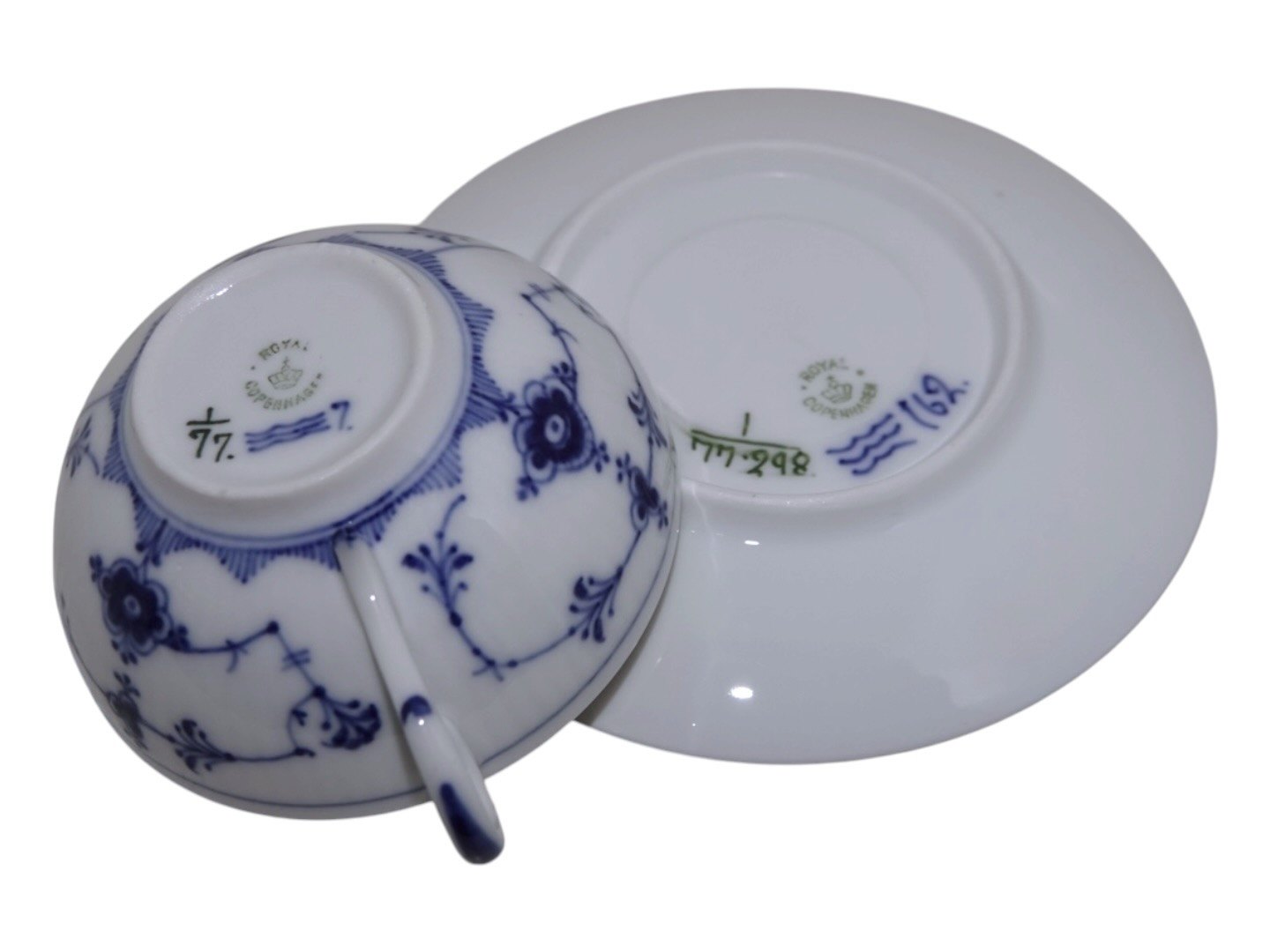 Royal Copenhagen Blue Fluted Plain, small chocolate cup with matching saucer.Decoration number 1/77.