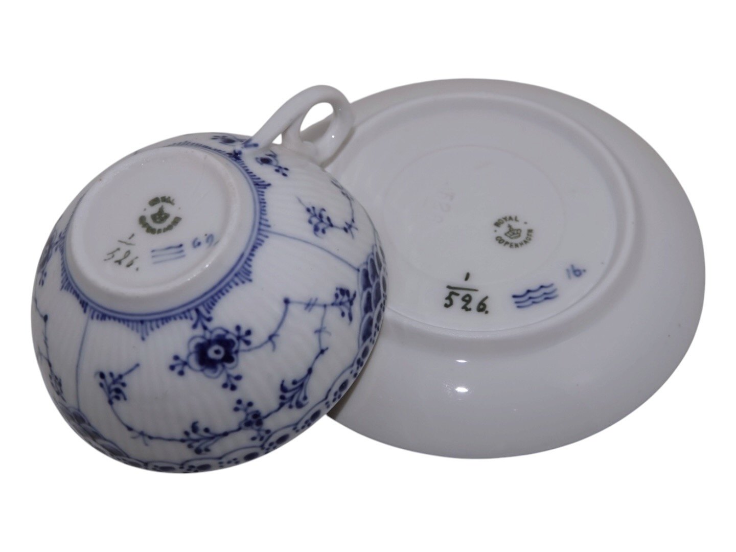 Royal Copenhagen Blue Fluted Half Lace, small cup with matching saucer.Decoration number 1/526.